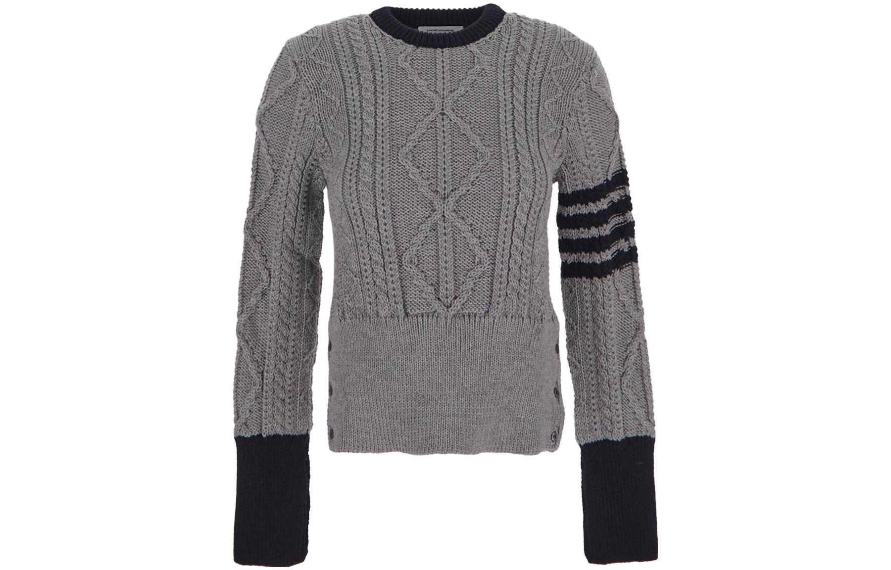 Signature 4-Bar Stripe Crewneck Pullover THOM BROWNE, светло серый 52 518₽