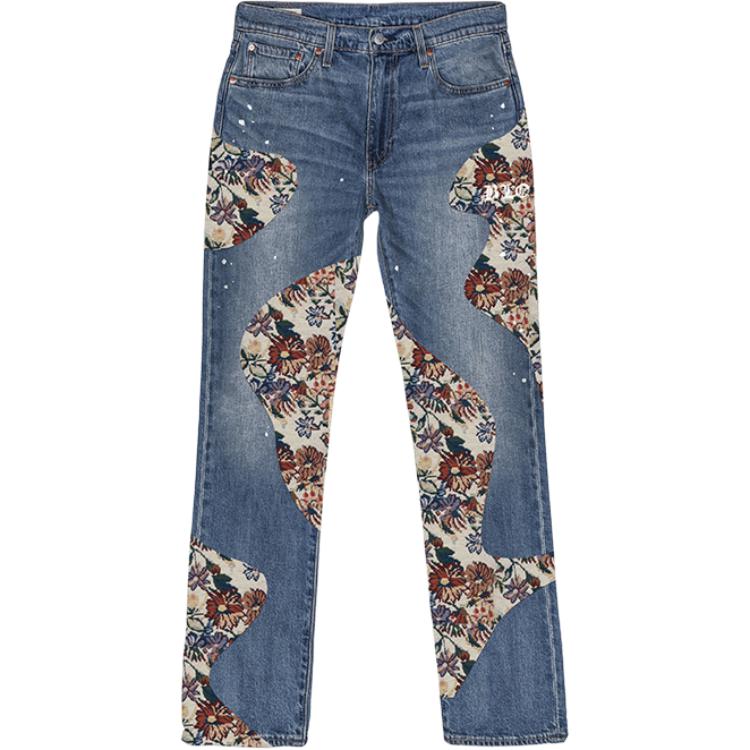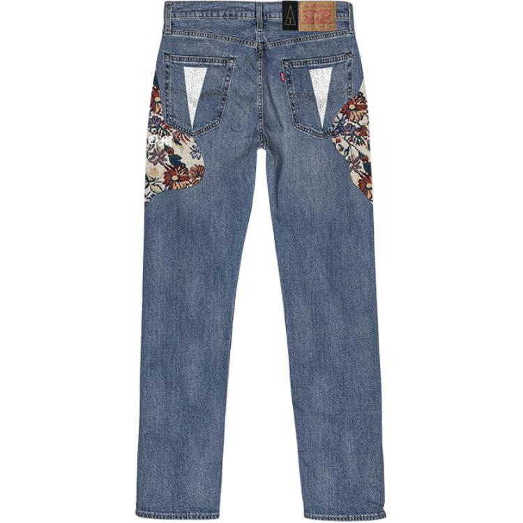 Эта сшитая на заказ модель выполнена из оригинальных джинсов Levi's 505 прямого кроя со средней посадкой, синего цвета, унисекс. Источник вдохновения: сад.