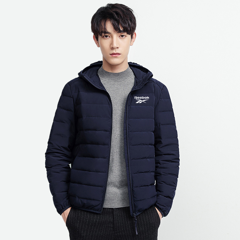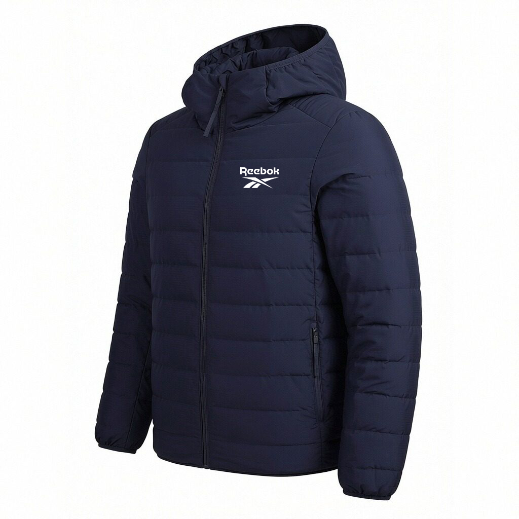 Пуховик Unisex с капюшоном, легкий, стеганый Reebok, темно-синий