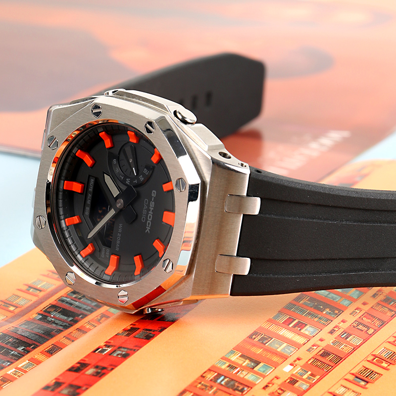 Цвет ремешка: Оранжевый, черный, с небольшим отверстием, длинный текстурированный оранжевый ремешок с застежкой-бабочкой