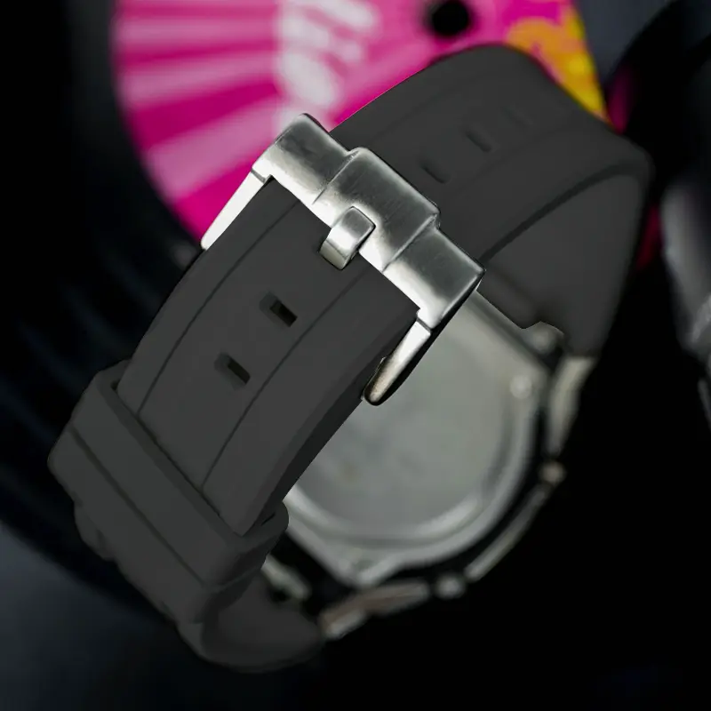 Цвет ремешка: Оранжевый, серебристый, с мелкими отверстиями и длинной текстурой, оранжевый ремешок, застежка-бабочка