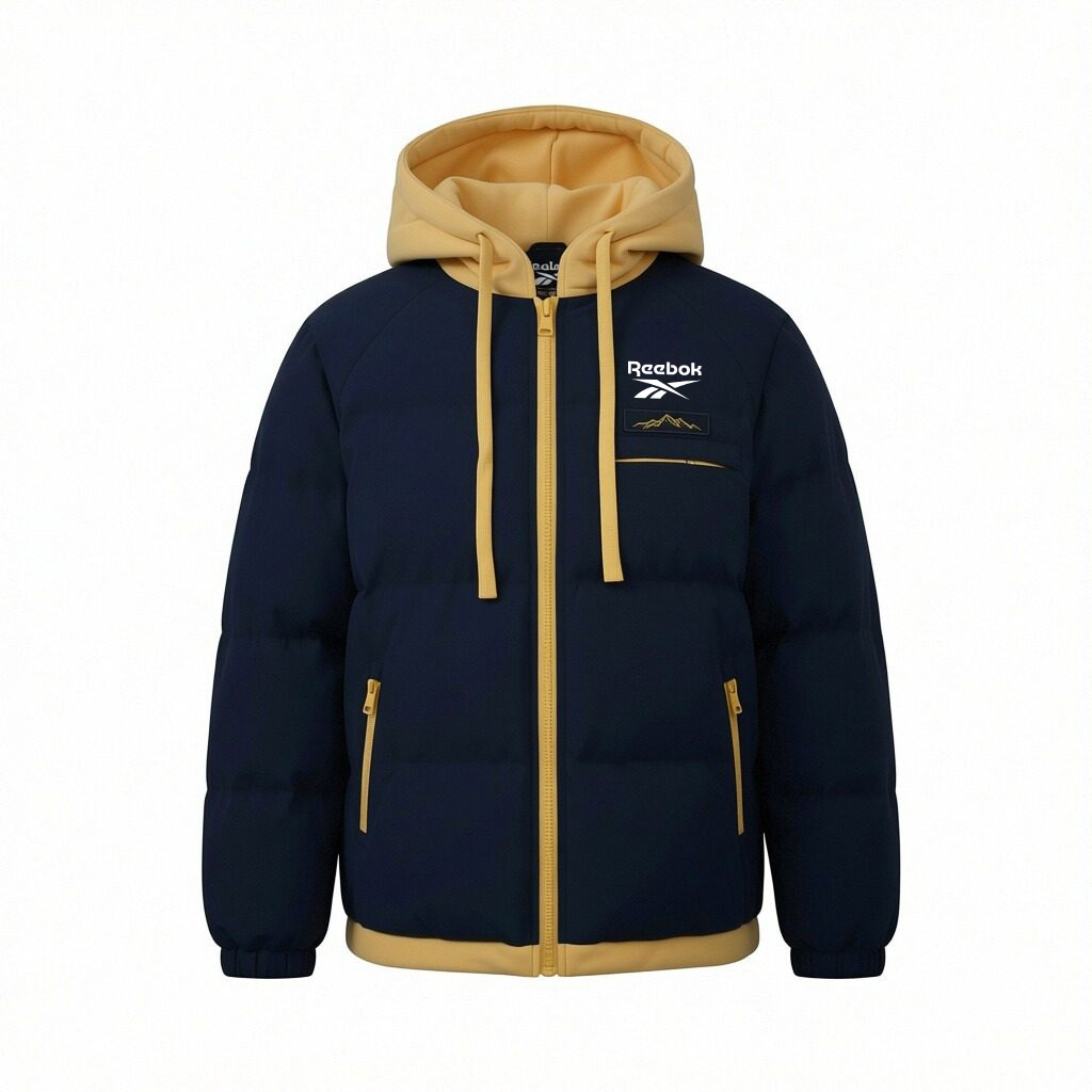 Пуховик Unisex с капюшоном, утолщенный, стиль Mock Two Piece Reebok, pine feather синий