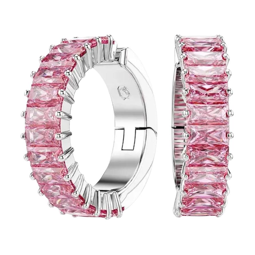 Swarovski Серьги-кольца Matrix с огранкой багет и розовыми кристаллами