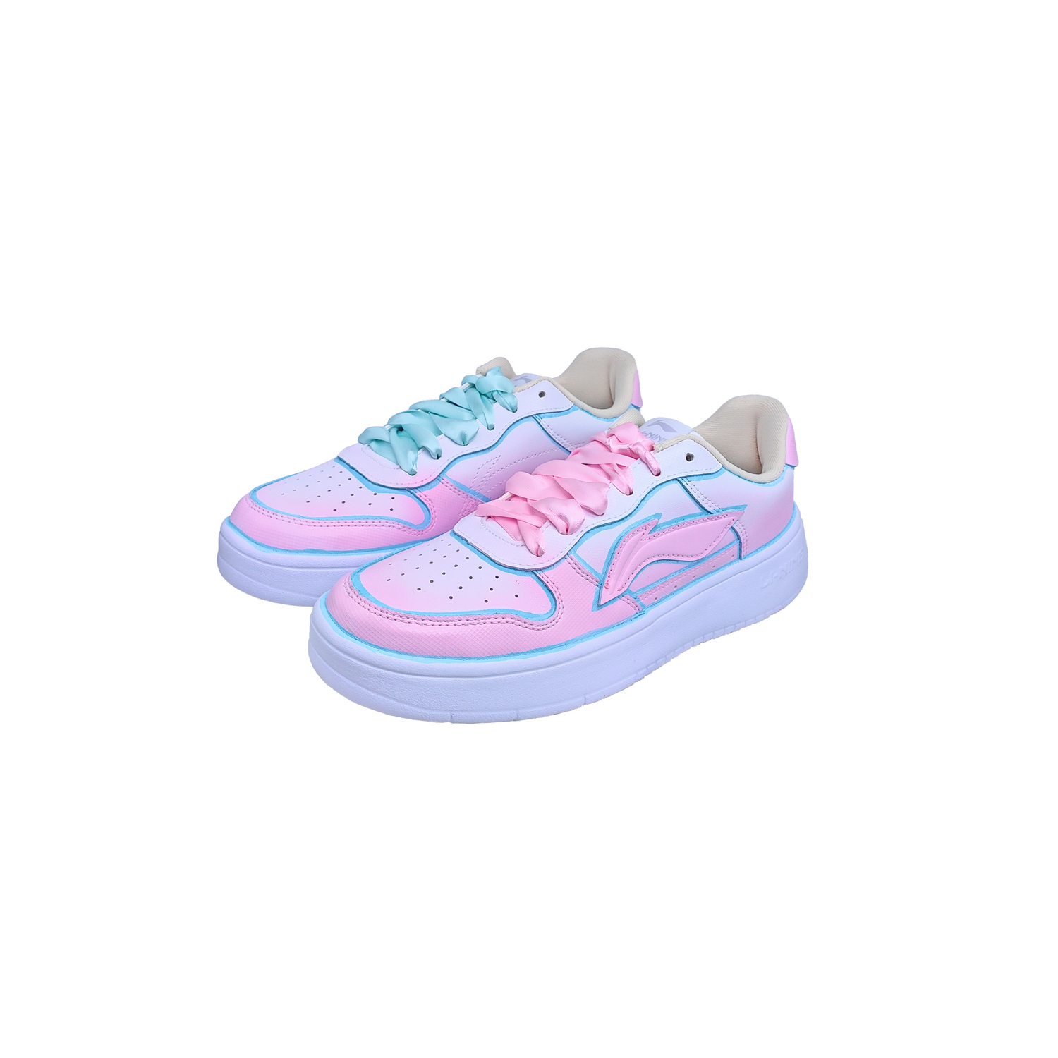 Эти кастомизированные кроссовки созданы на основе серии Li-Ning Floating Boat (артикул AGCU452-1) китайского бренда. Дизайн вдохновлен розовыми оттенками девушек в стиле аниме. Верхняя часть полностью выполнена в градиентном розовом цвете с синими линиями по краям, создающими двухмерный эффект. Верхняя часть отличается асимметричным дизайном: слева - персиково-розовый, справа - молочно-голубой, а атласные шнурки придают ей уникальный и привлекательный вид. Кастомизированные кроссовки сохраняют классический стиль серии Floating Boat, обеспечивая амортизацию, противоскользящее покрытие и воздухопроницаемость для комфорта ног, что делает их идеальными для долгих прогулок или поездок на работу. Низкий дизайн визуально удлиняет ноги и идеально сочетается с плиссированными юбками, джинсами или платьями, гарантируя отличные фотографии для свиданий, прогулок и социальных сетей. Сочетая стиль и практичность, эти кроссовки станут незаменимым элементом гардероба любой женщины и прекрасным подарком для вашей девушки.