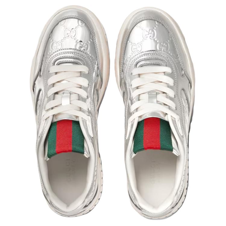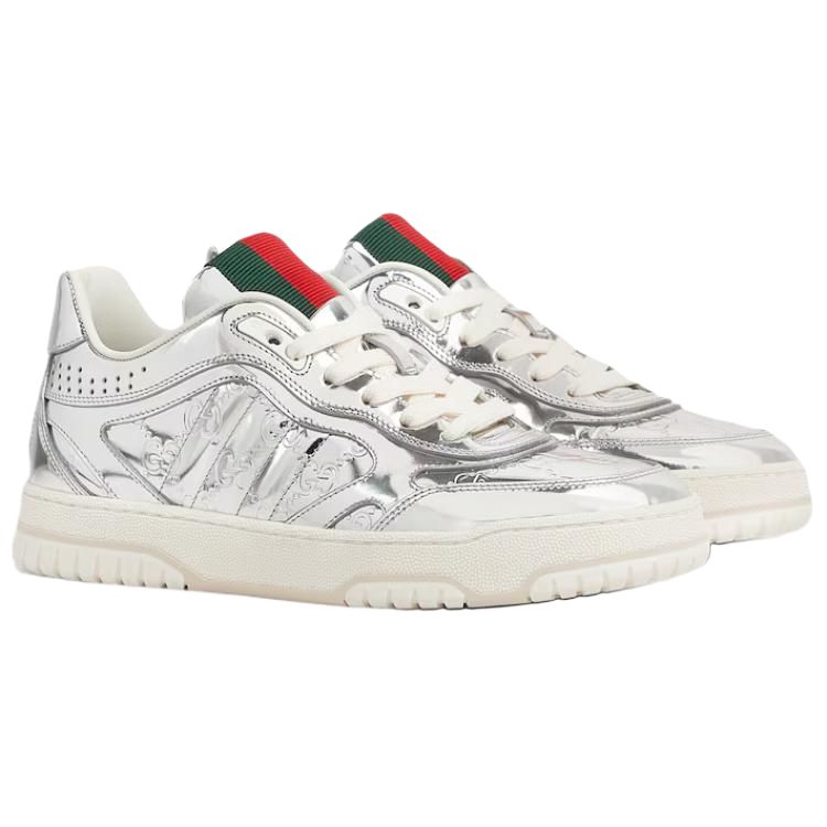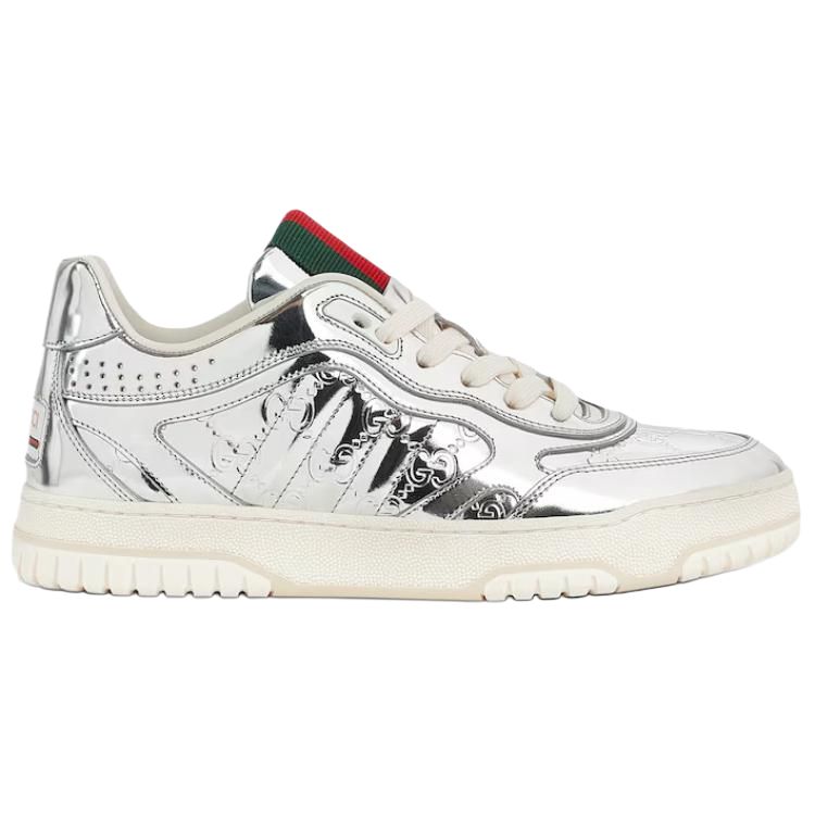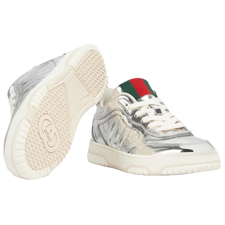 GUCCI Re Web Leather Low top Skateboard Shoes Women's Silver