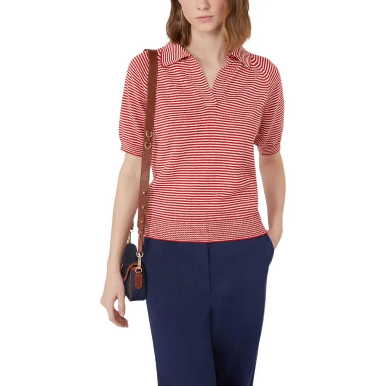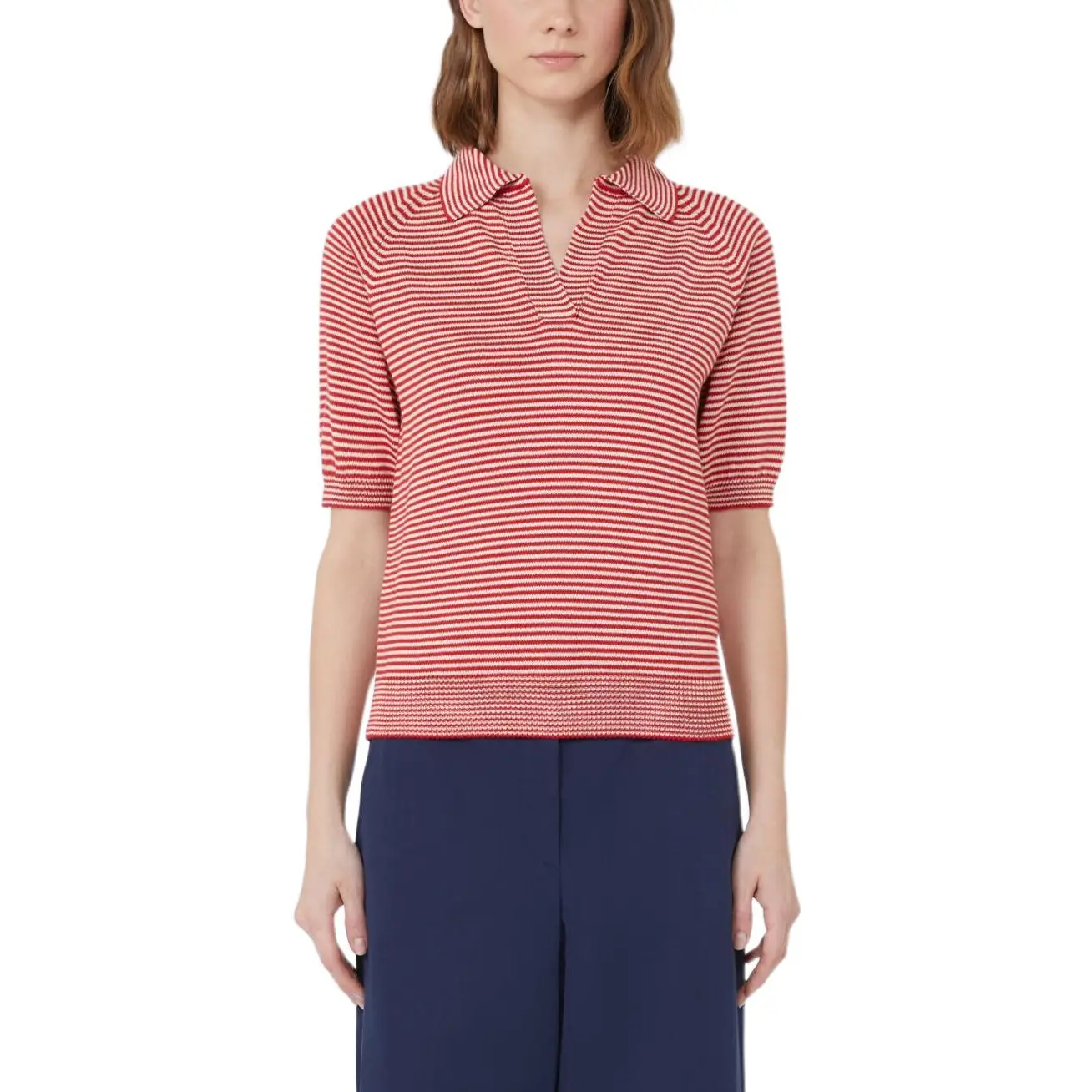 Стильное поло в полоску от Weekend Max Mara красного цвета – идеальный выбор для летнего гардероба.