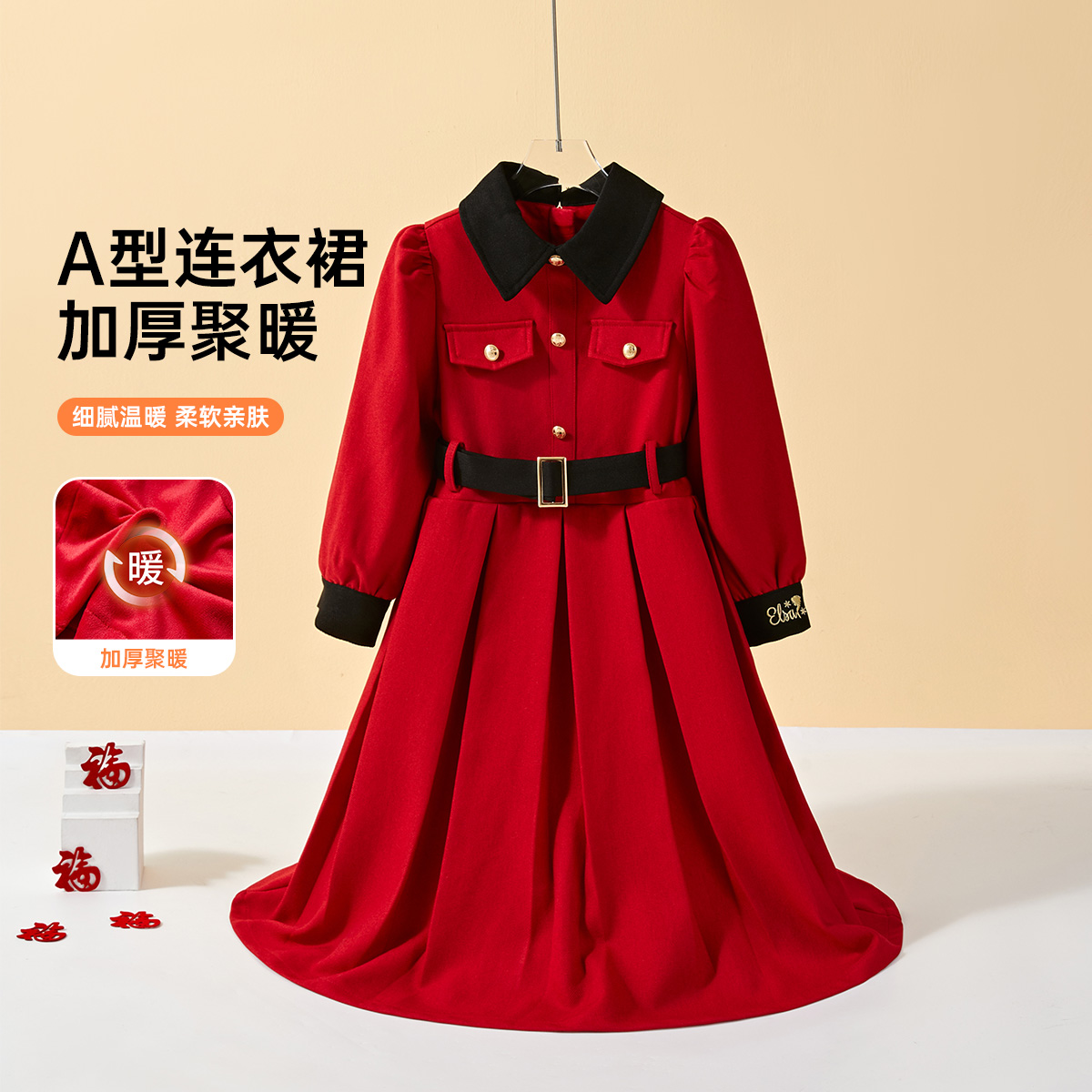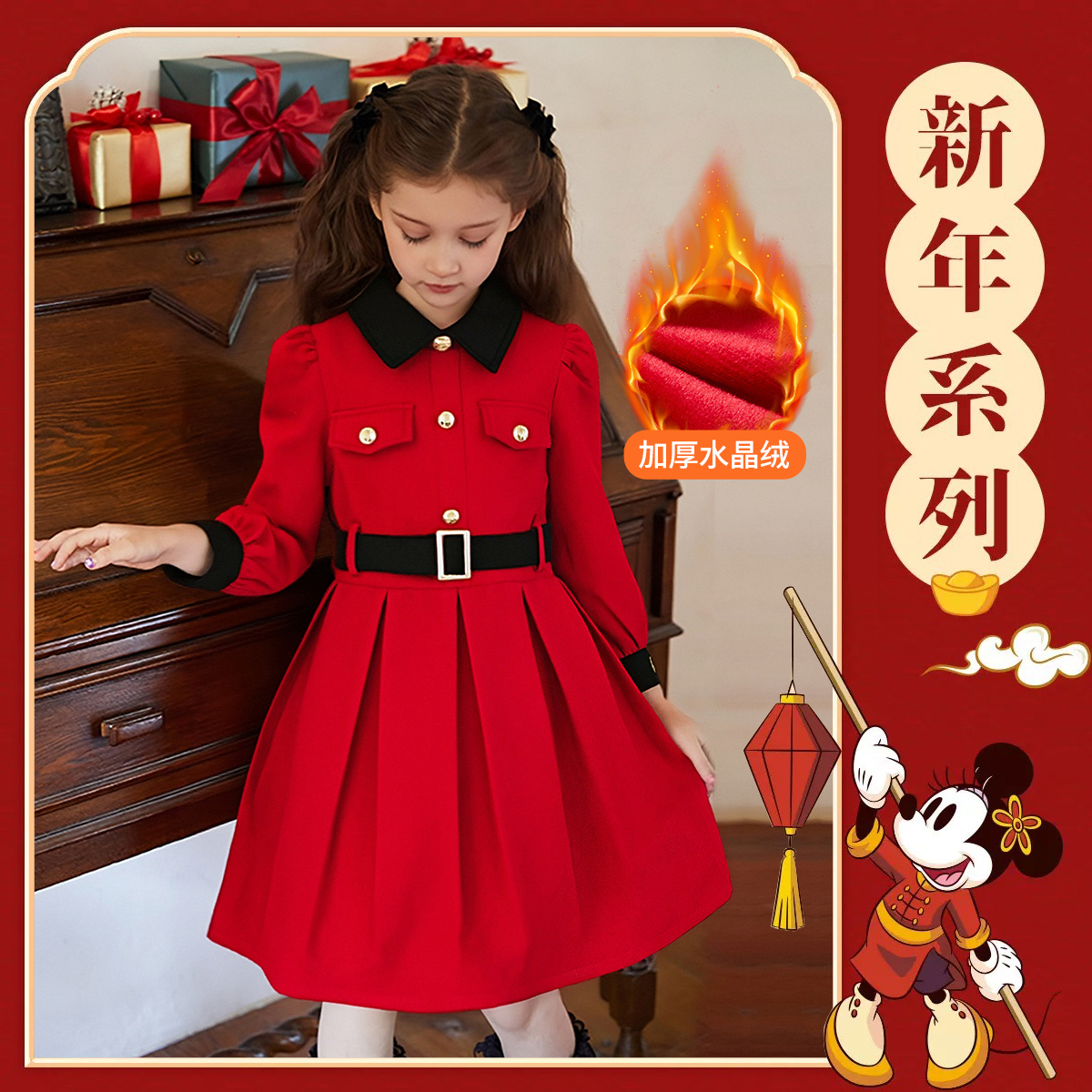 Детское платье Lapel Long Disney, красный