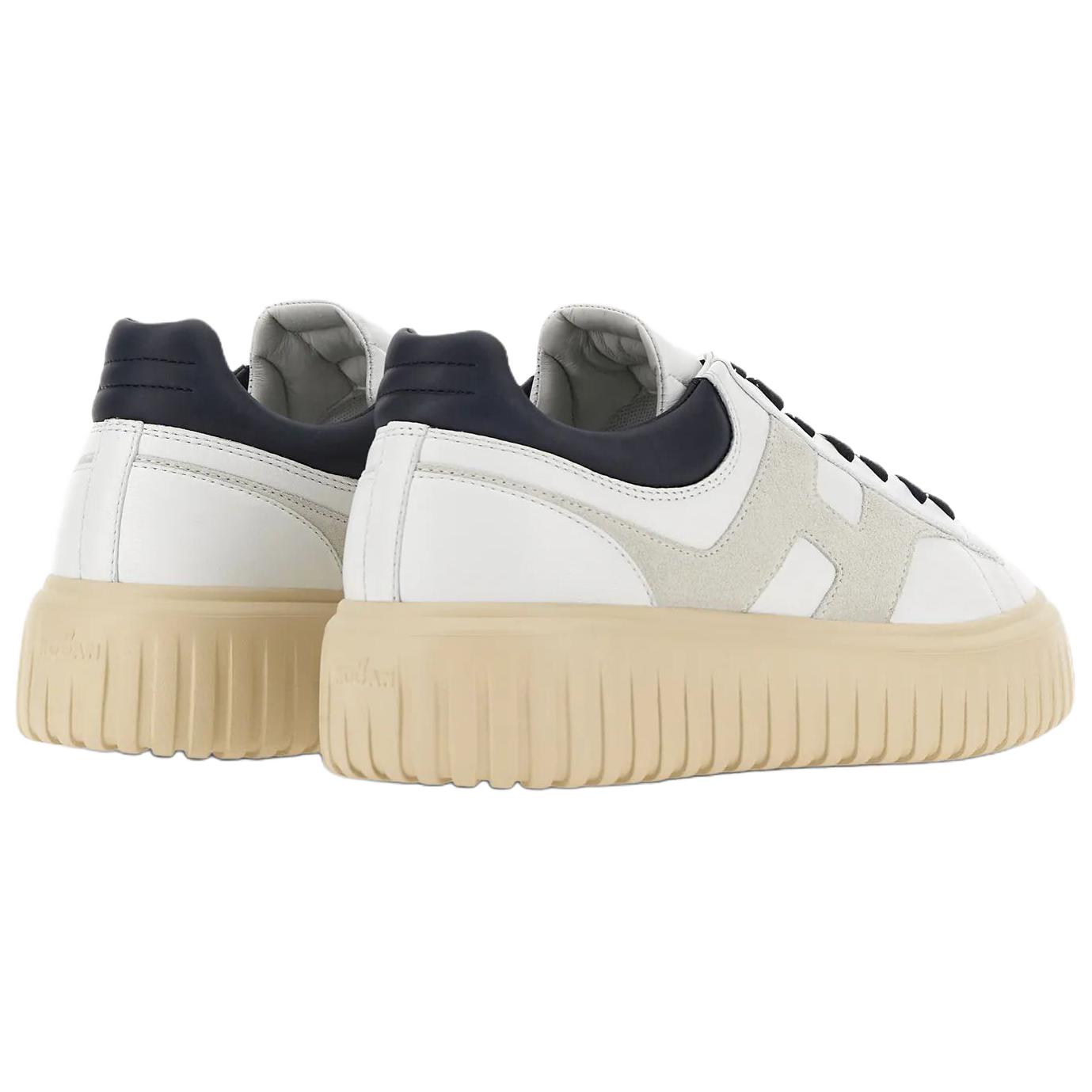 Серия H-Stripes выделяется своей легкой, нескользящей подошвой, спортивным дизайном и универсальностью. Подошва украшена вертикальными полосами. Эта спортивная повседневная обувь имеет верх из кожи наппа, компактный и простой силуэт, логотип в форме буквы H, идущий вдоль боковой части, вышитые детали вокруг воротника, мягкую и удобную подкладку в области пятки и стельку из пеноматериала с эффектом памяти для амортизации и мягкой поддержки.