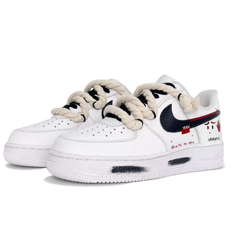 Nike Air Force 1 Fun Rope Graffiti Low top Skateboard Shoes Unisex White
