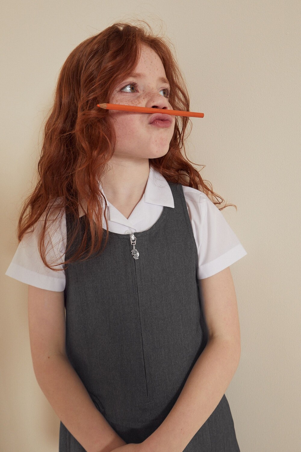 Школьное платье с подтяжками и вышивкой Next, серый 3 644₽