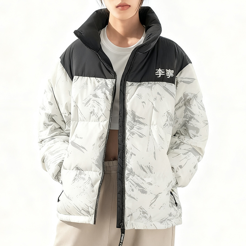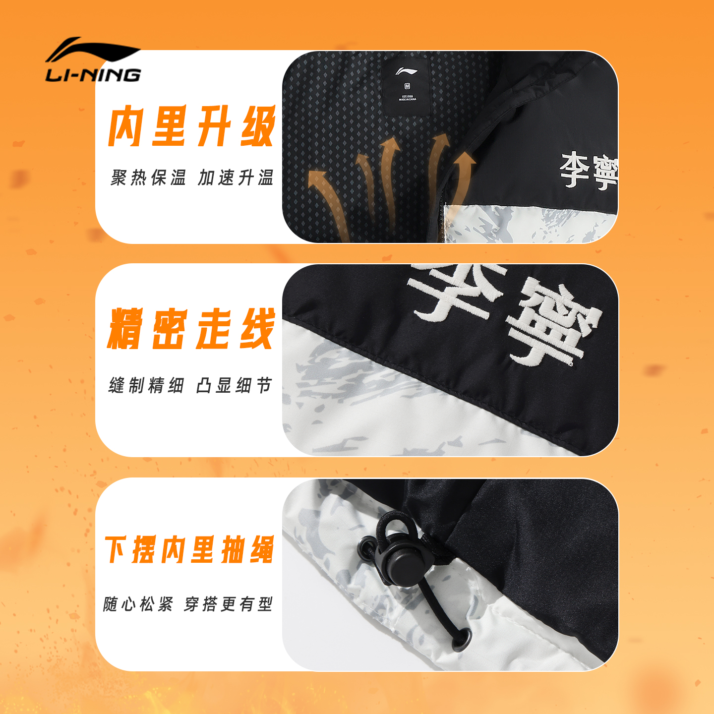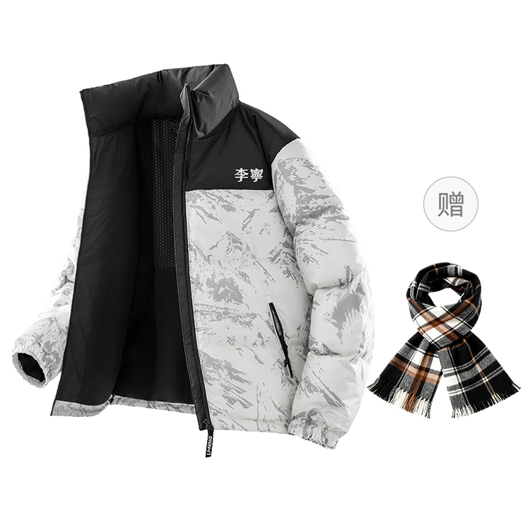 Li Ning Down Jackets Men's Stand Collar Thickened Li-Ning, белый серый comes with hat