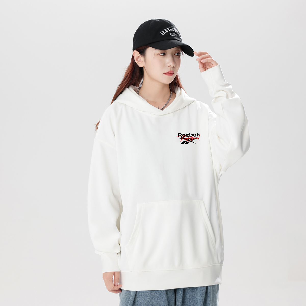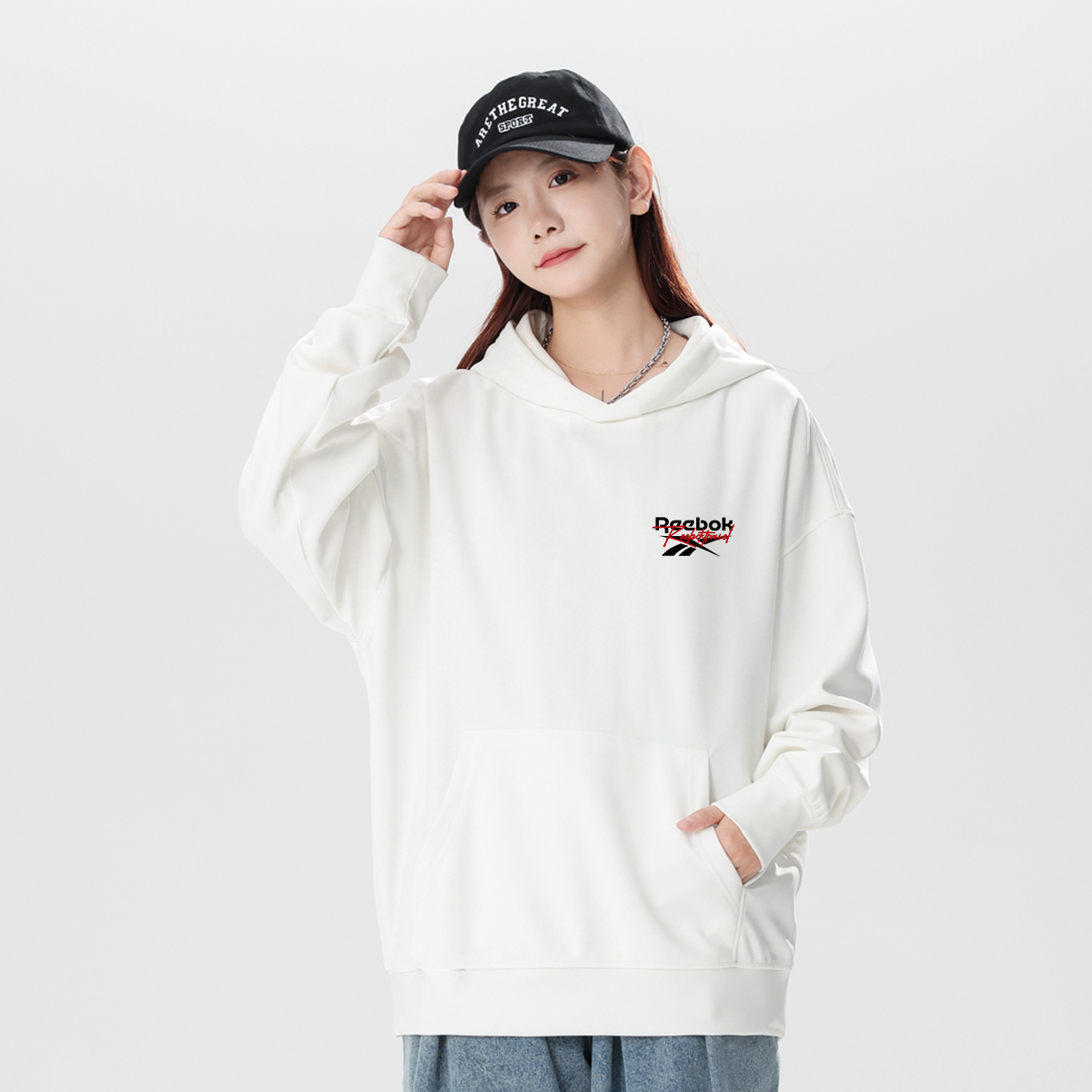 Толстовки Unisex с капюшоном, средней плотности Reebok, белый heather серый[thickened and fleece-lined] 3 782₽