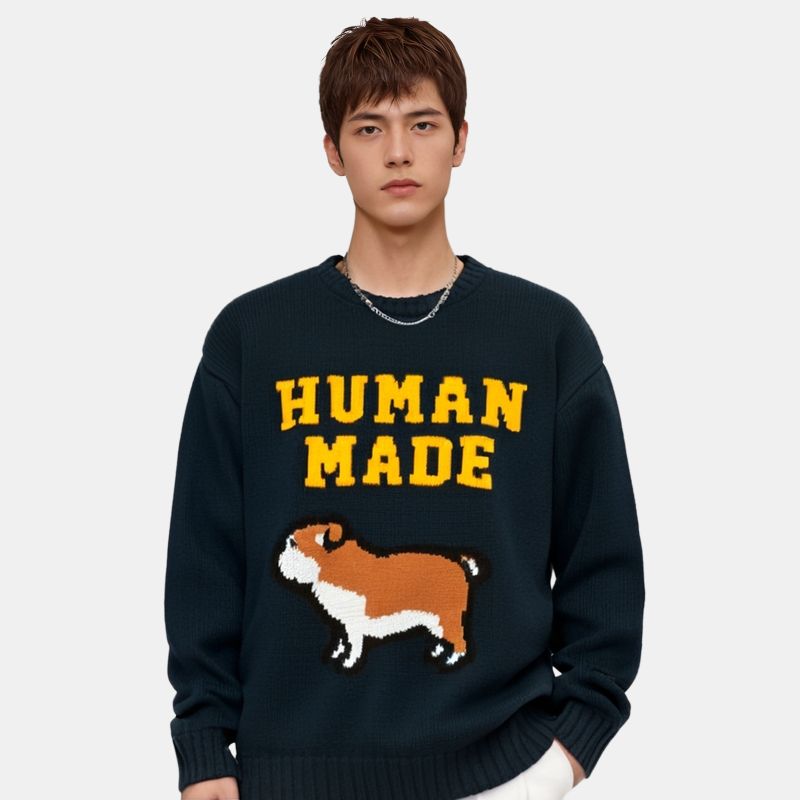 Вязаный свитшот HUMAN MADE, темно-синий 34 486₽