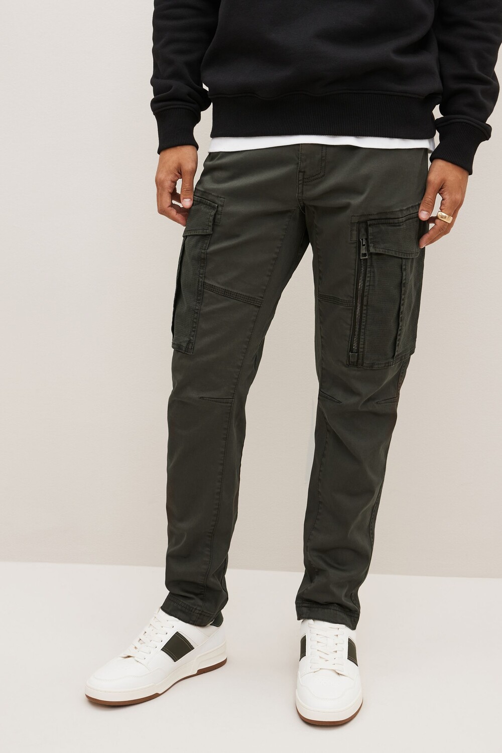 Боевые брюки стрейч приталенного кроя на молнии Next, зеленый