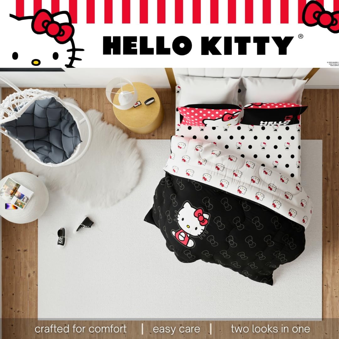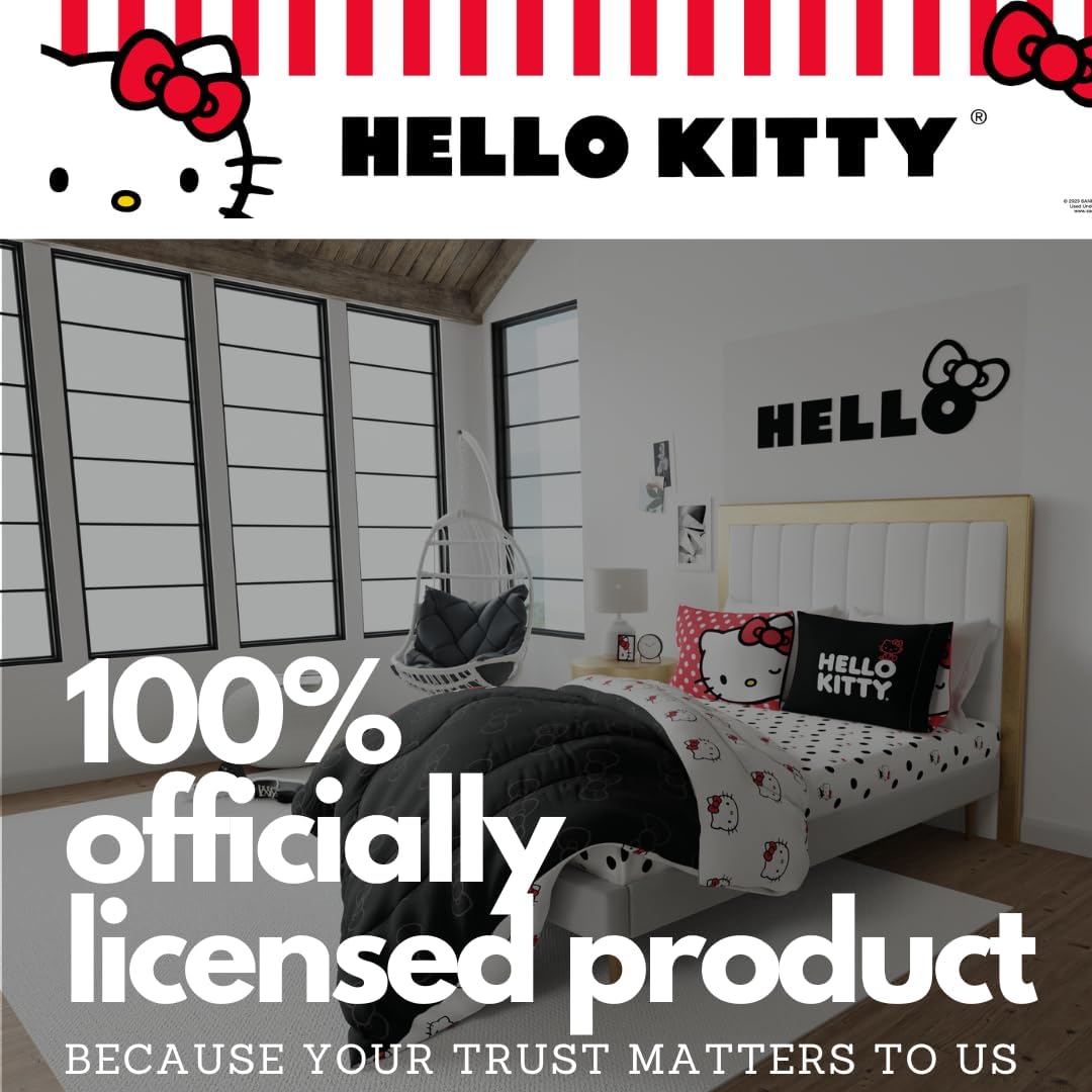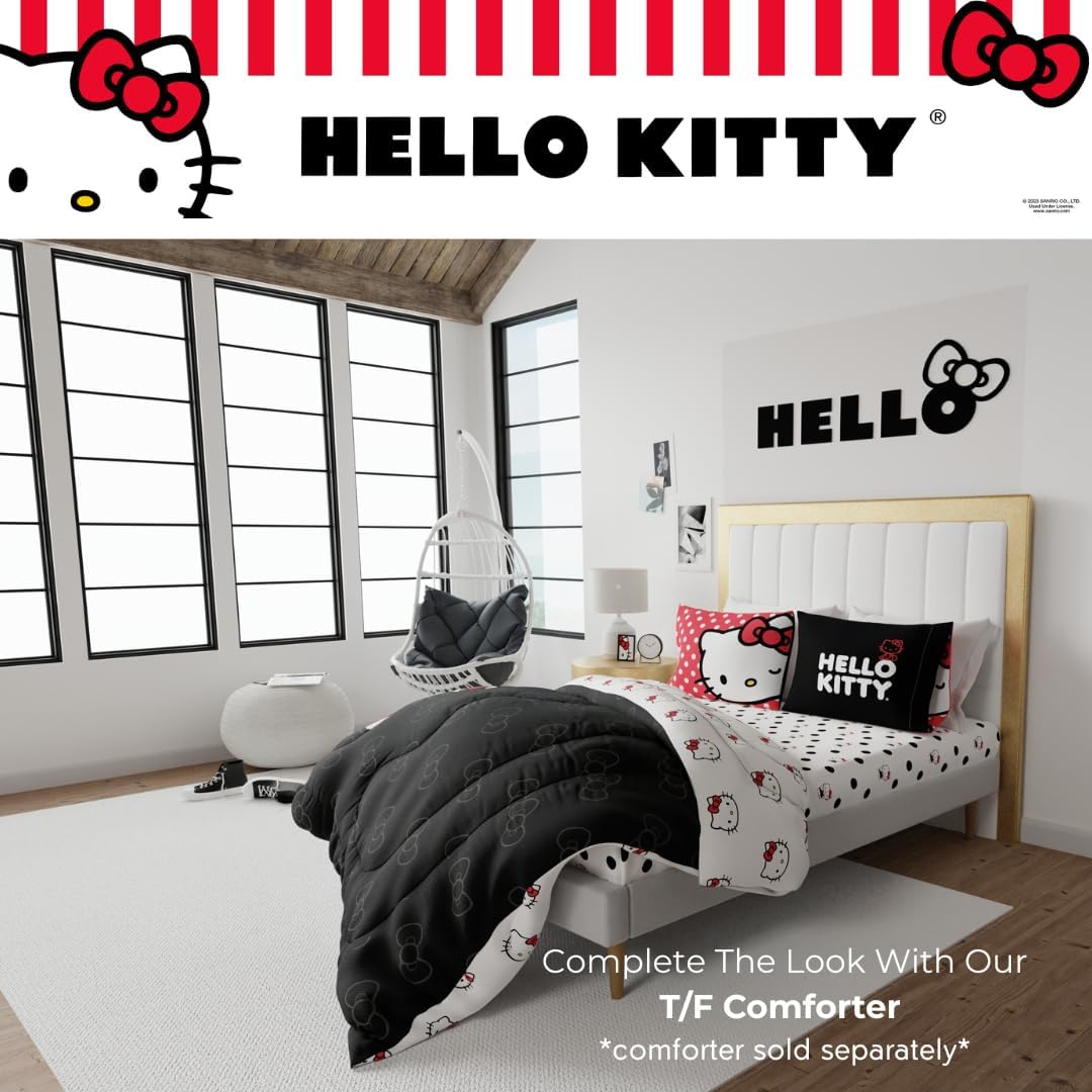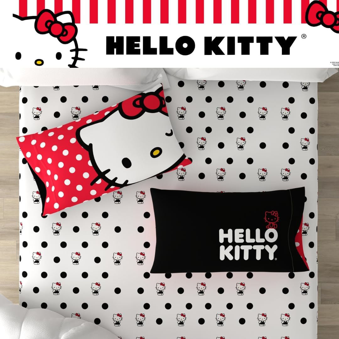 ДИЗАЙН HELLO KITTY: присоединяйтесь к веселью на вечеринке в горошек с участием всеми любимой кошечки Hello Kitty. Этот комплект постельного белья поражает воображение горошком и культовым персонажем Hello Kitty от Sanrio.