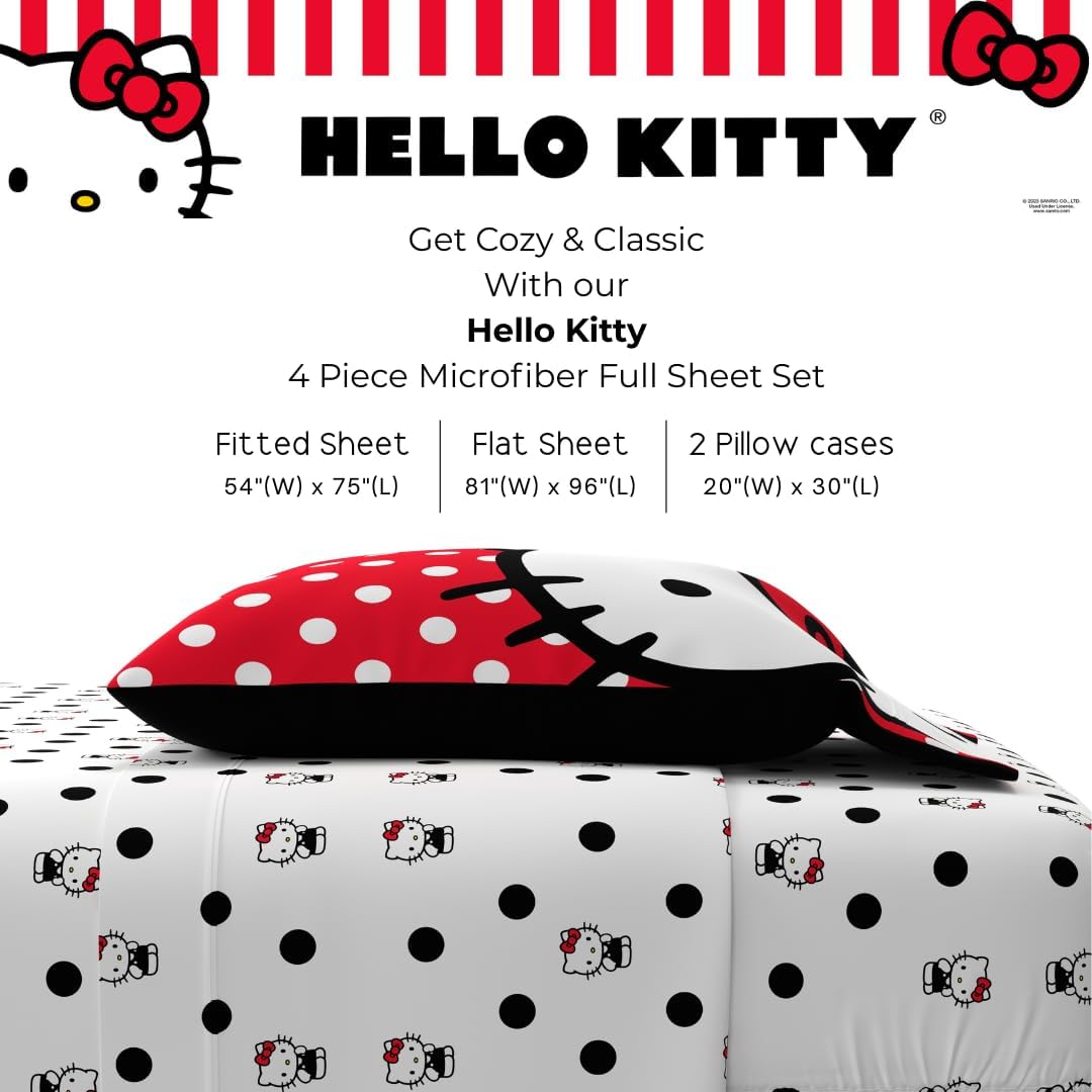 Комплект постельного белья Full Hello Kitty Polka Dot, 4 предмета, Super Soft Microfiber Franco, цвет Hello Kitty Polka Dots