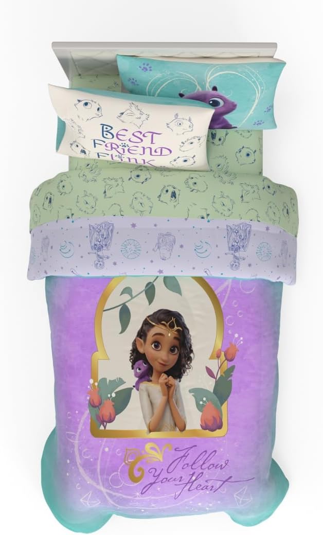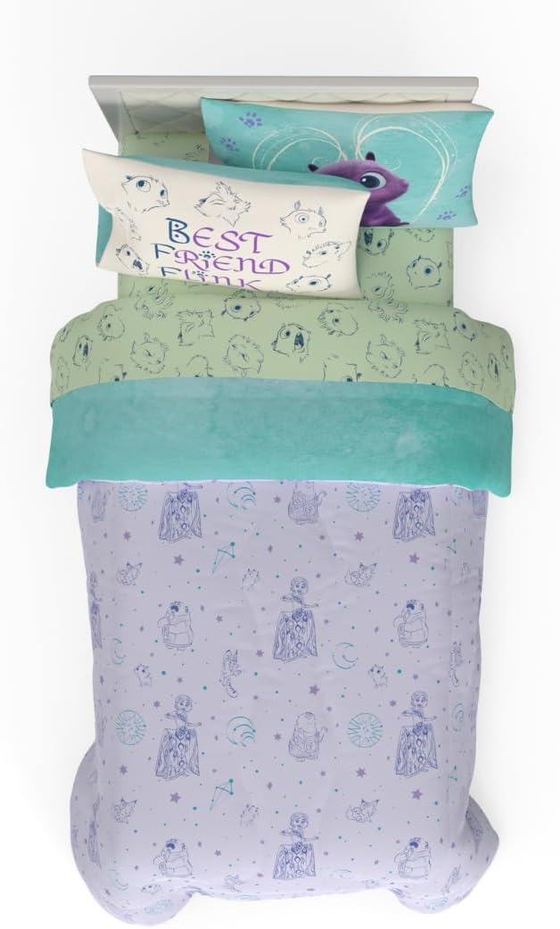 ДВА ДИЗАЙНА В ОДНОМ ОДЕЯЛЕ: этот комплект постельного белья Spellbound включает в себя двустороннее одеяло, которое подарит вам двойное волшебство! На одной стороне изображен рисунок «Следуй за своим сердцем» с яркими персонажами, а на обратной - мистический узор в фиолетовых и мятных тонах, идеально подходящий для быстрого обновления интерьера.