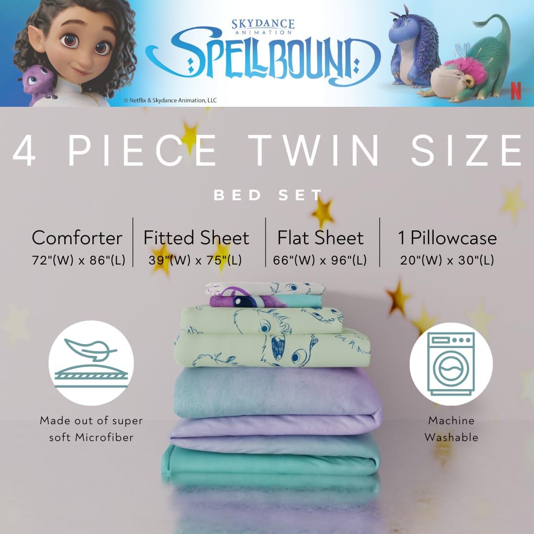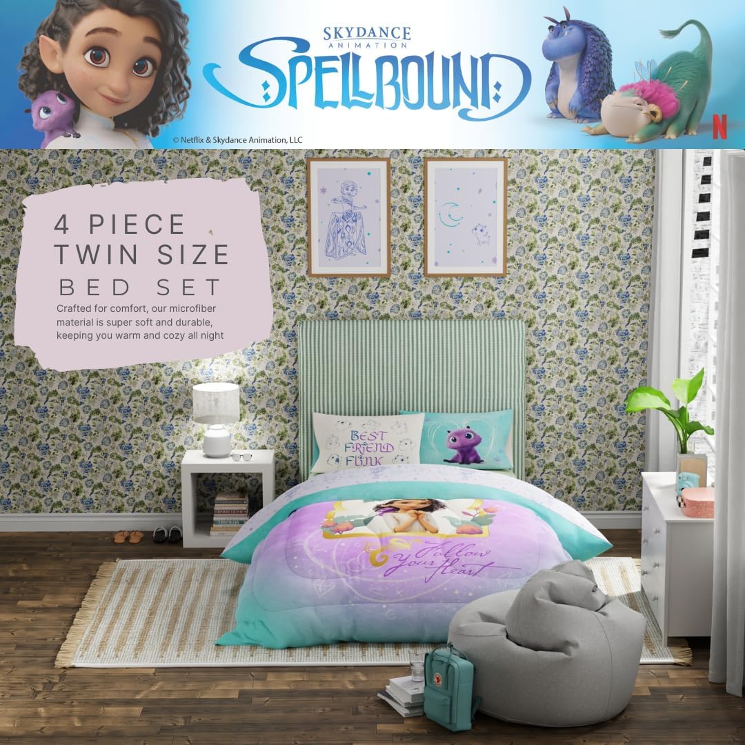 Привнесите немного волшебства в сон с комплектом постельного белья Spellbound Follow Your Heart! Идеальный для маленьких мечтателей, этот комплект включает в себя одеяло и простыни для односпальной/полуторной кровати. Двустороннее одеяло имеет два очаровательных дизайна - с одной стороны изображена тема «Следуй за своим сердцем» с яркими персонажами Spellbound, а с другой - причудливый фиолетово-мятный узор, наполненный мистическими символами. В комплект простыней для односпальной кровати входят простыня на резинке, плоская простыня и наволочка (или наволочки), чтобы завершить волшебный образ. Изготовленный из очень мягкой ткани, бережно относящейся к чувствительной коже, этот комплект полностью пригоден для машинной стирки, что делает его таким же практичным, как и очаровательным. Будучи официально лицензированным продуктом, комплект постельного белья Spellbound изготовлен из высококачественных материалов, гарантирующих комфорт и долговечность.