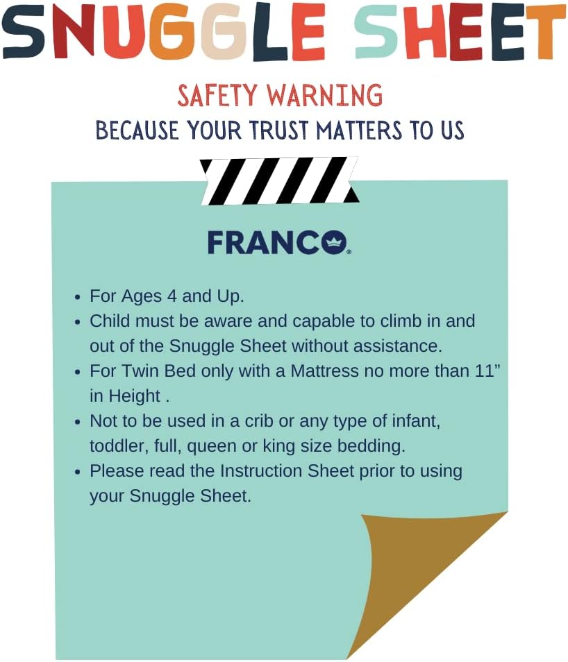 В КОМПЛЕКТ ВХОДИТ (ДЛЯ ДЕТЕЙ ОТ 4 ЛЕТ И СТАРШЕ): очень мягкая простыня размера «Snuggle Sheet» (99 см, ширина) x 193 см, а также одна стандартная наволочка размером 51 см, ширина x 76 см.
