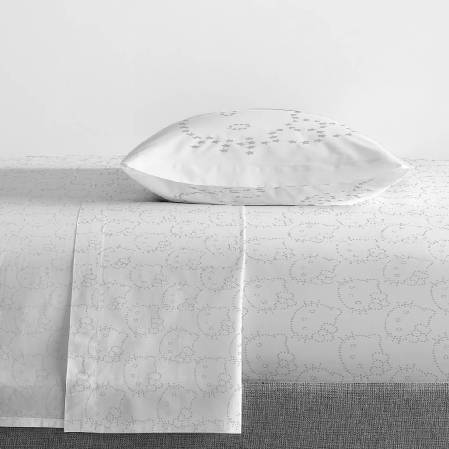 Подарите себе незабываемые впечатления от сна с этим комплектом постельного белья Hello Kitty для двуспальной кровати! Этот очаровательный комплект украсит любую спальню и заставит любого поклонника Hello Kitty с нетерпением ждать момента, когда он сможет лечь спать! Каждый супермягкий комплект постельного белья из микрофибры включает в себя простыню на резинке, обычную простыню и одну стандартную двустороннюю наволочку. Размер простыни на резинке: 39 x 75 дюймов, обычной простыни: 66 x 96 дюймов, а также одна стандартная наволочка размером 20 x 30 дюймов. Это только комплект постельного белья, одеяло продается отдельно. Легкий уход: машинная стирка в холодной воде, сушка в сушилке при низкой температуре.