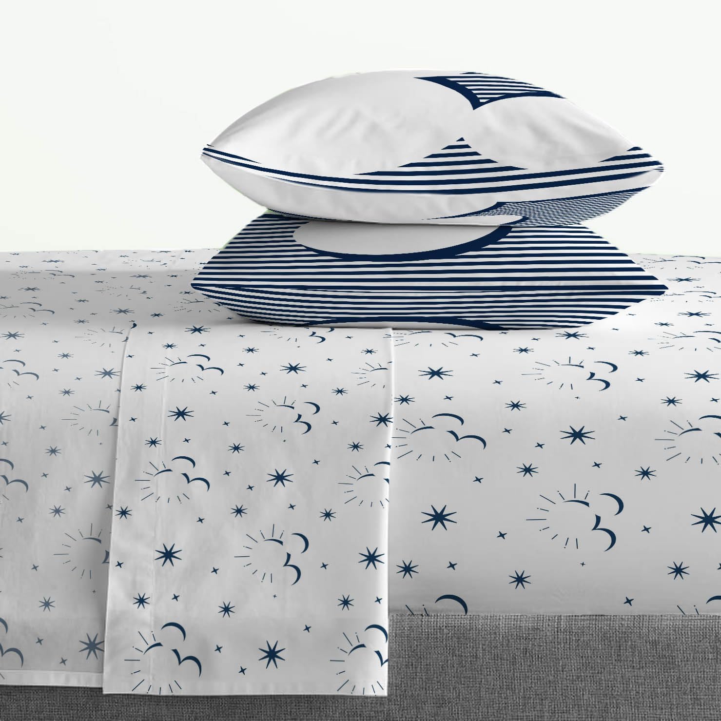 Полный комплект из 4 предметов: включает 1 простыню на резинке (137 см x 193 см), 1 плоскую простыню (204 см x 237 см) и 2 стандартные наволочки (51 см x 76 см). Простыня на резинке с глубокими карманами подходит для матрасов толщиной до 25 см.