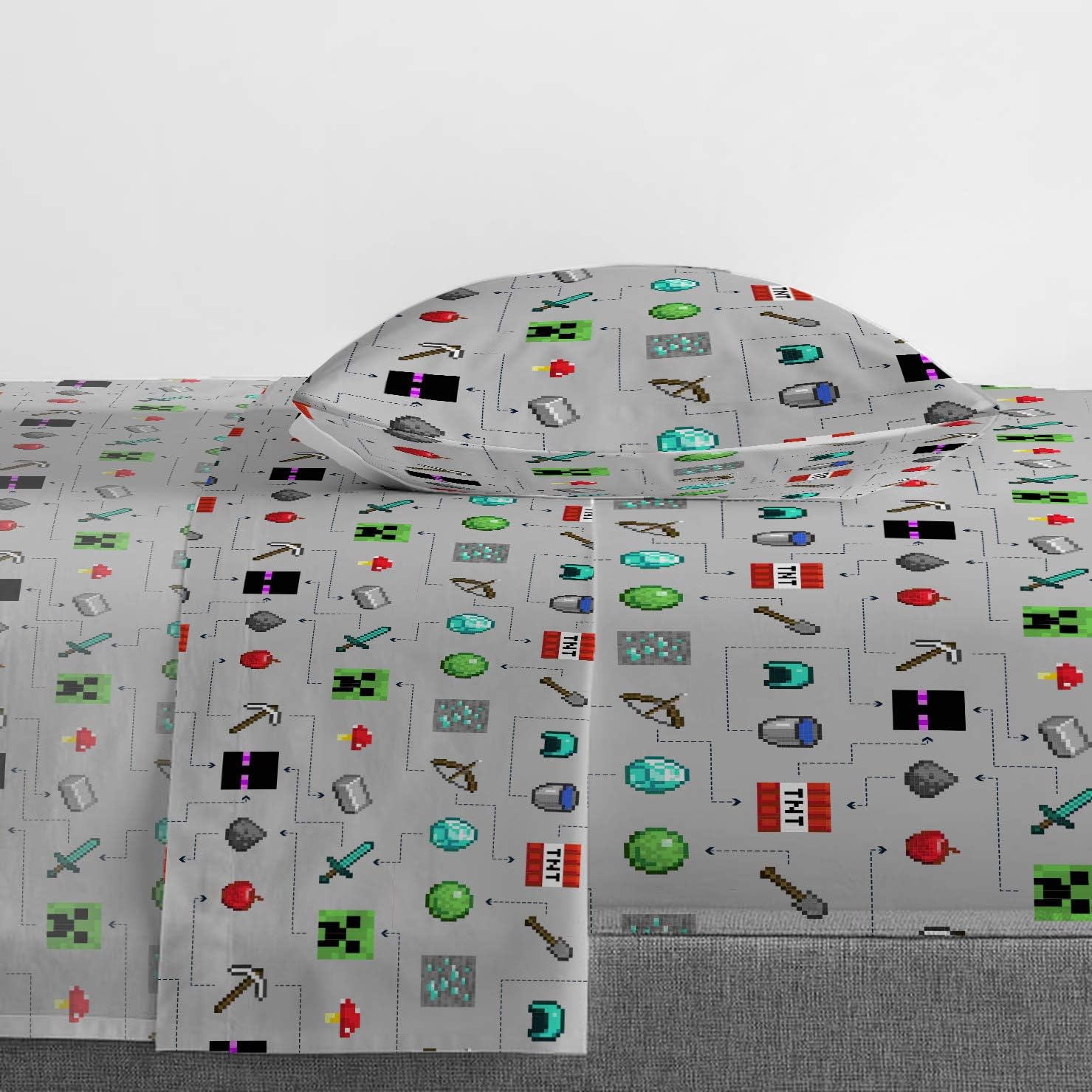 Комплект постельного белья Jay Franco, Twin, 3 предмета, серый, Minecraft