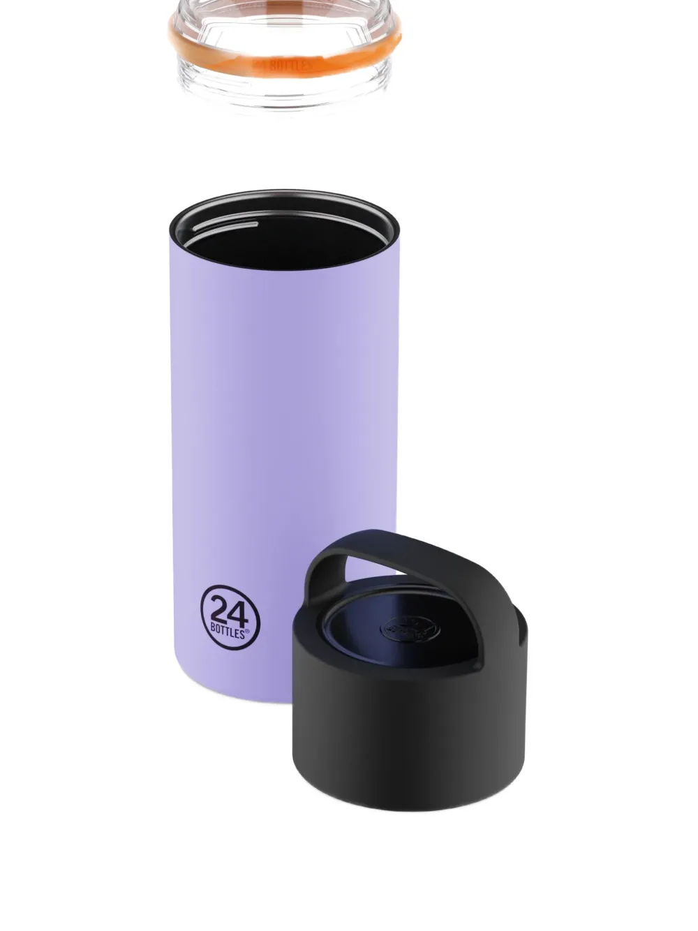• Фиолетовая крышка с деталями логотипа, ручка, винтовая крышка, оранжевая отделка