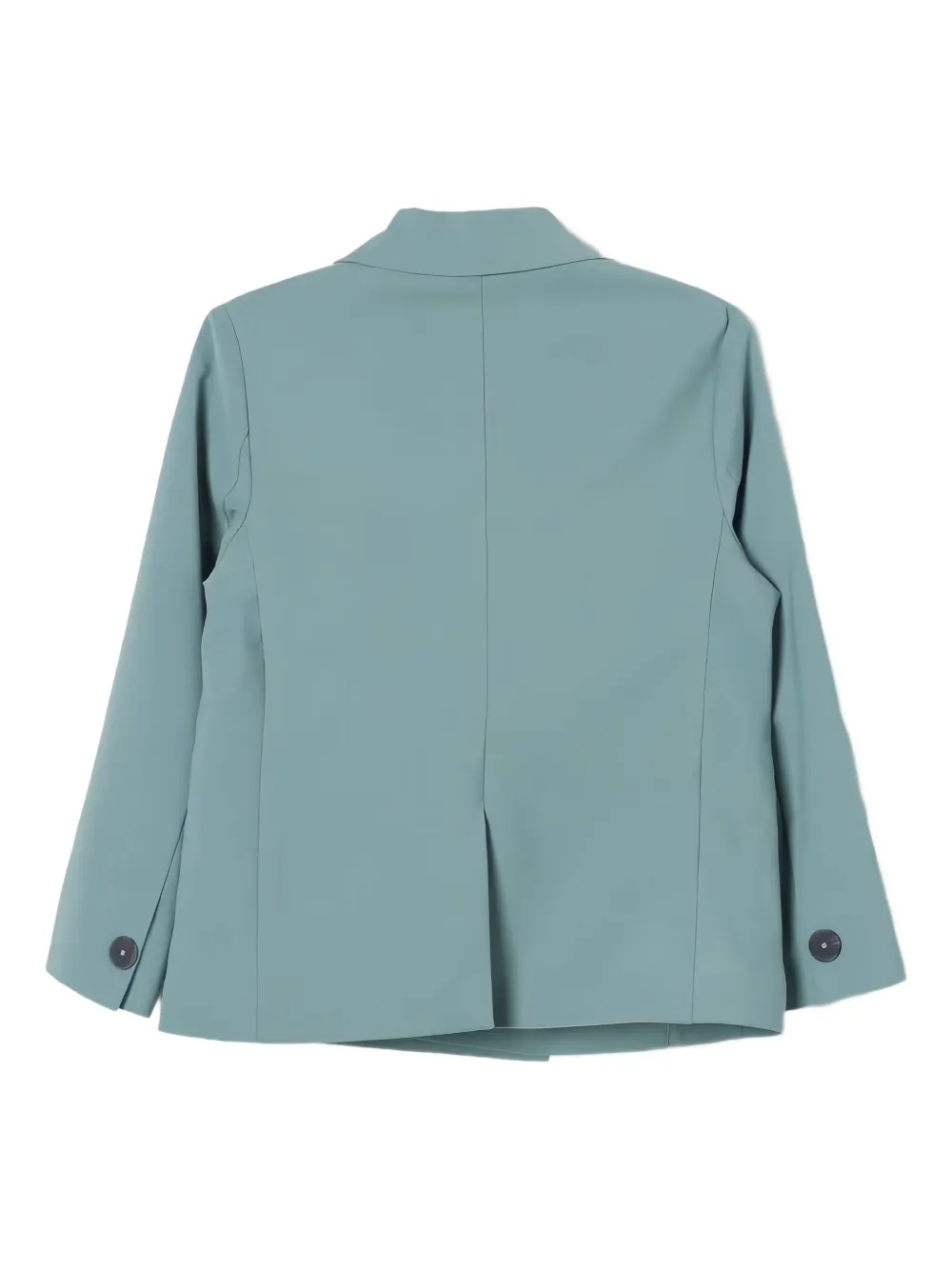 Зеленый, застежка на пуговицы, лацканы с вырезом, длинные рукава, двубортный