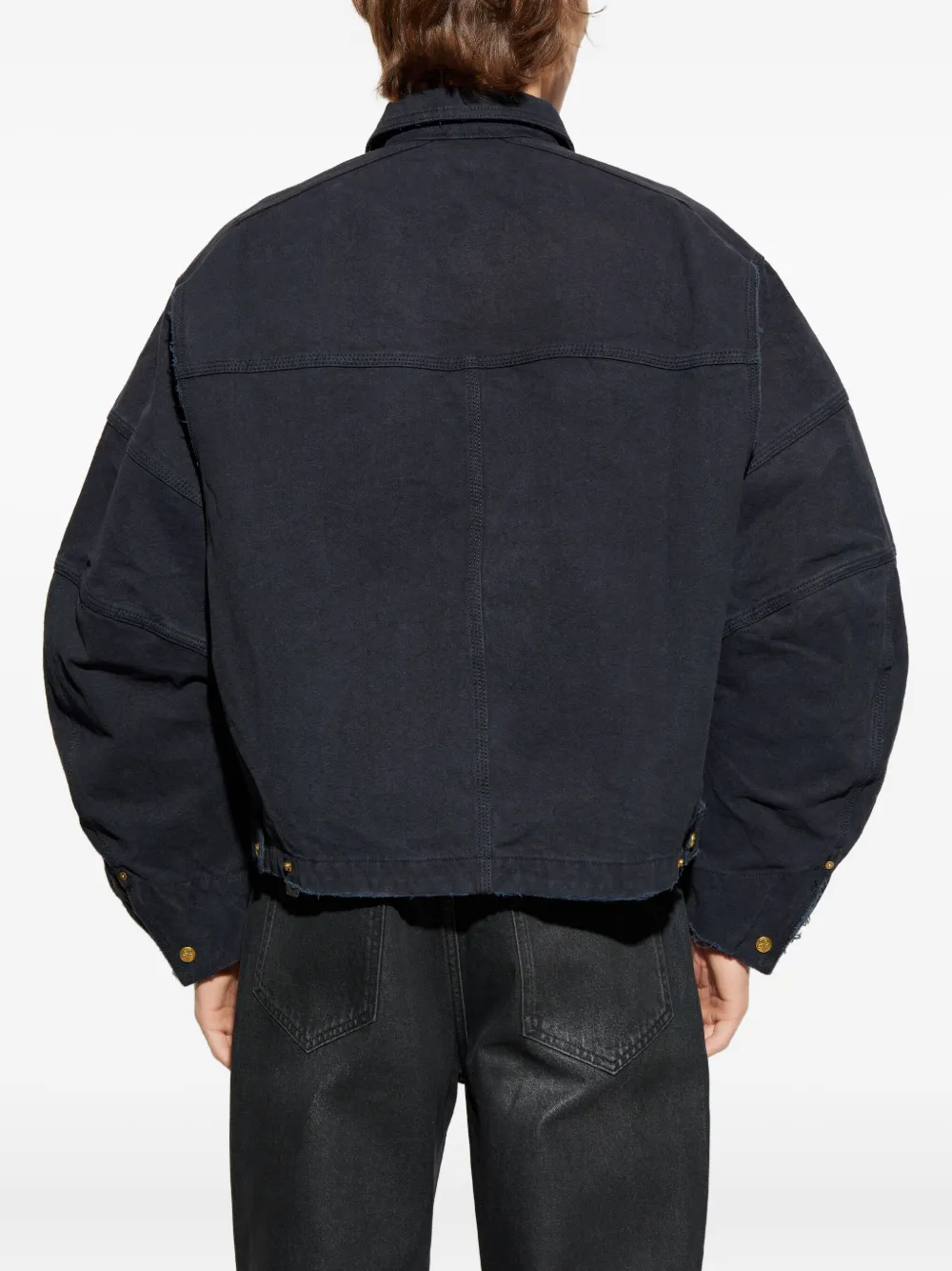 Черный, фурнитура под золото, отложной воротник, два нагрудных кармана с клапанами, застежка на молнии, необработанный край низа