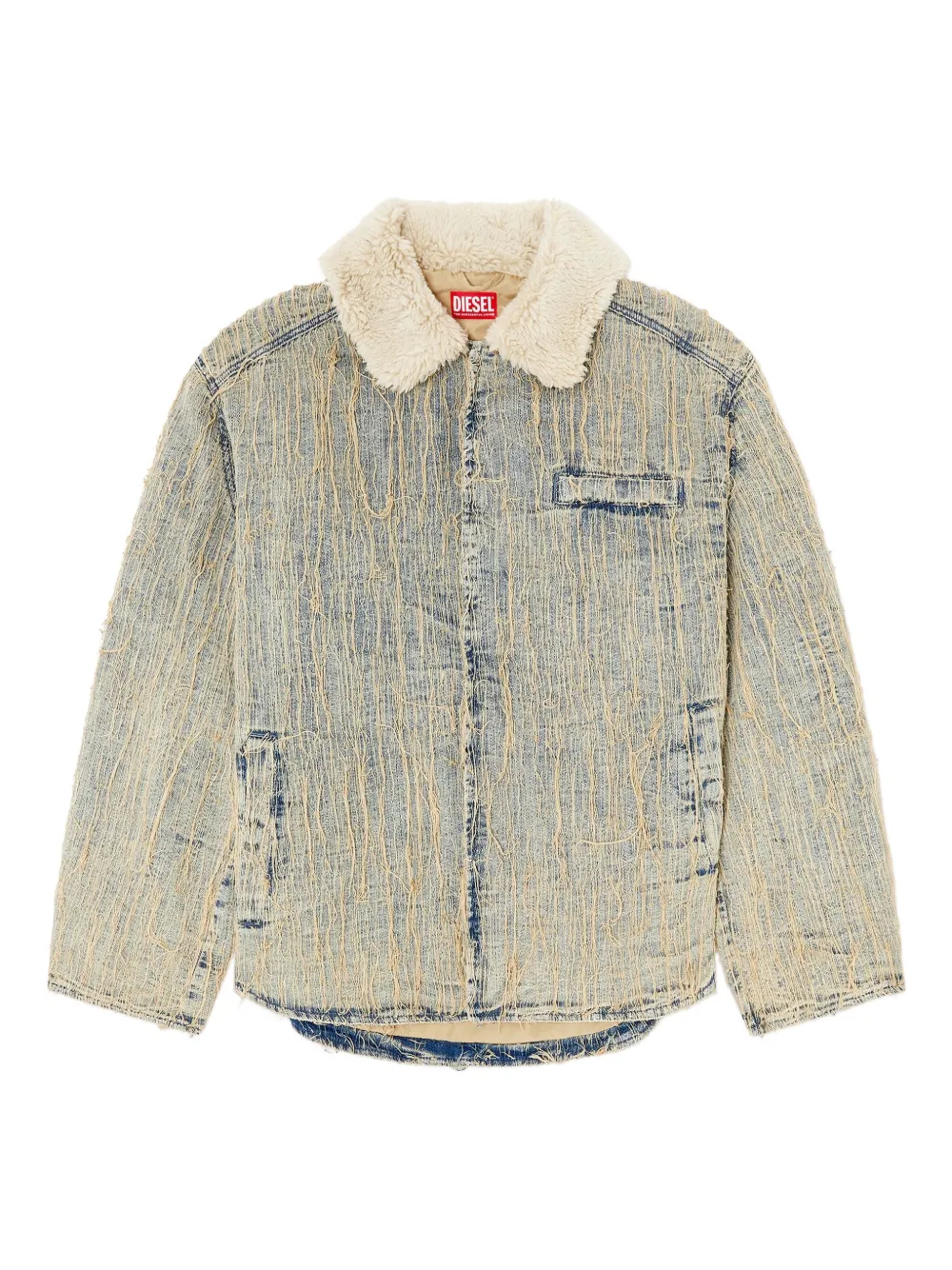 Светло-голубой воротник из шерпы застежка на пуговицы нагрудный карман