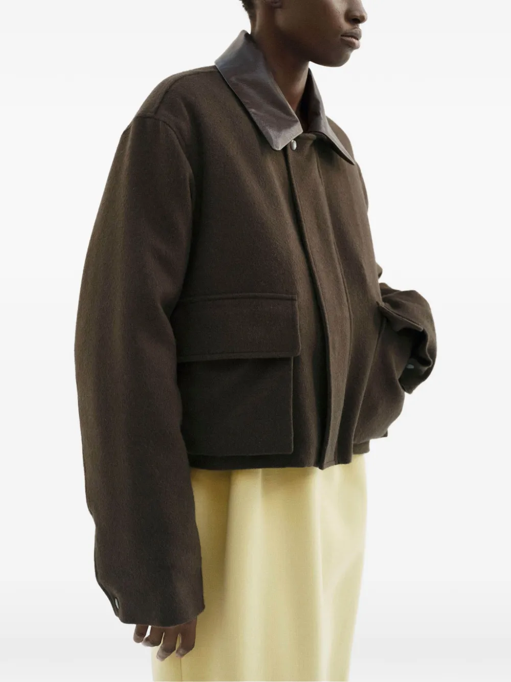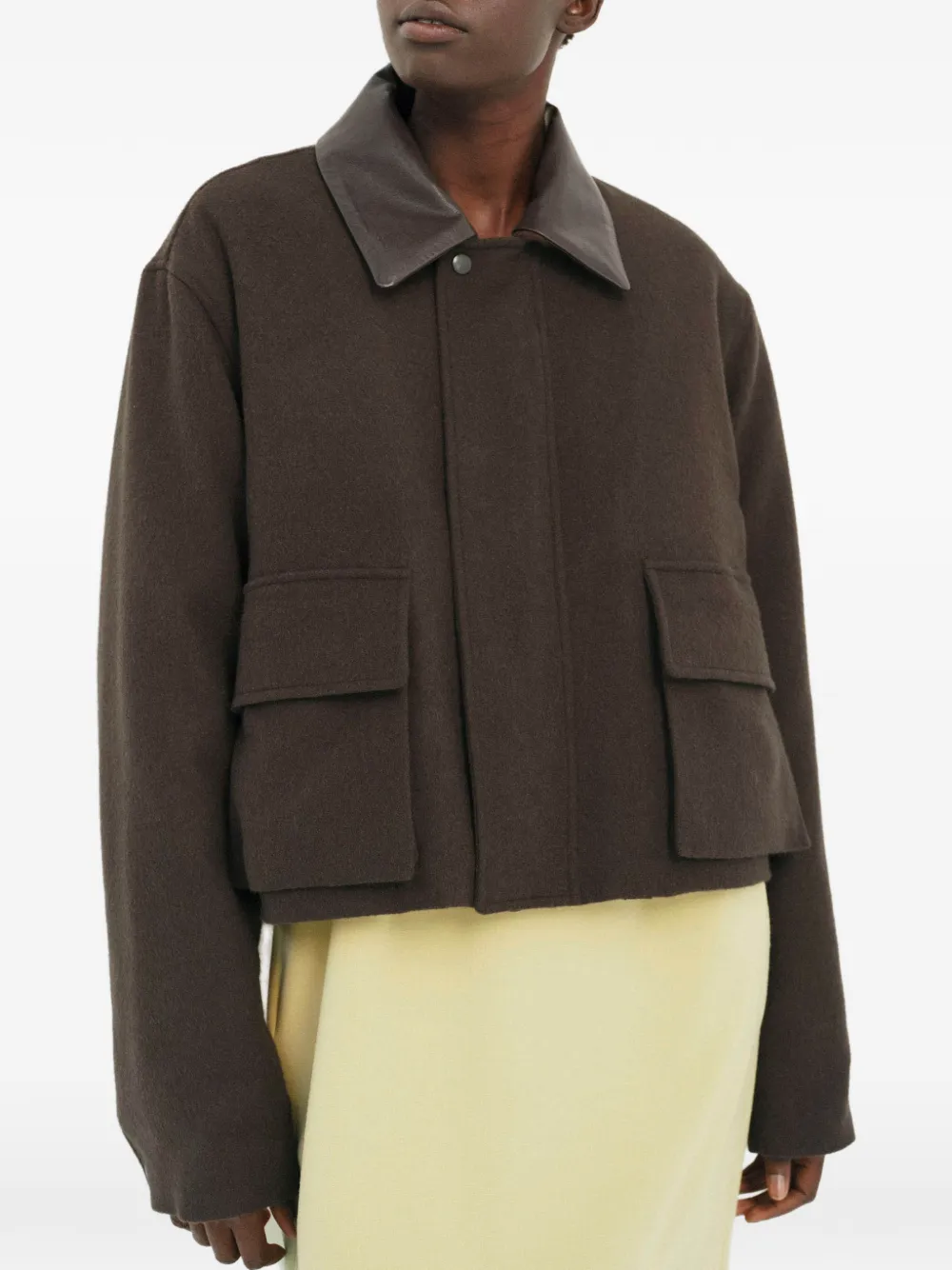 Зеленый кожаный воротник с накладными карманами