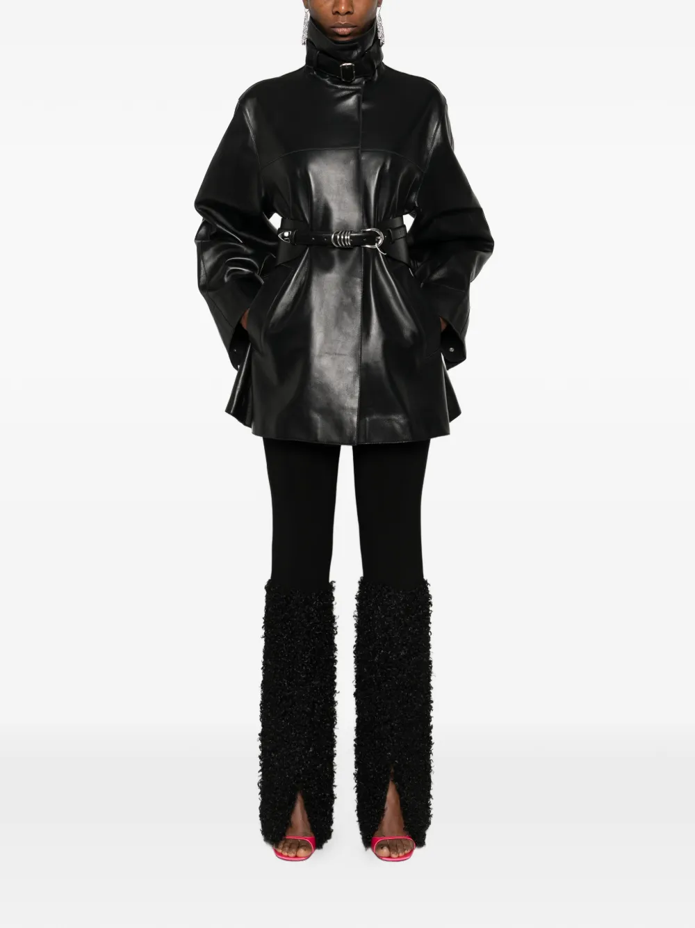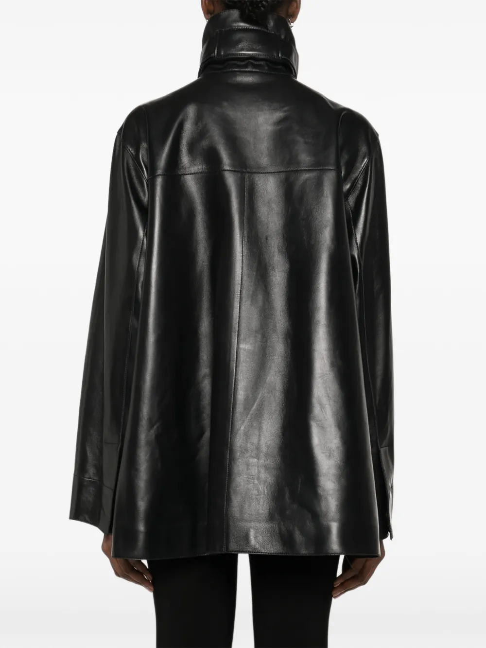 Черная куртка с высоким воротником, выполненная из кожи, с боковыми карманами