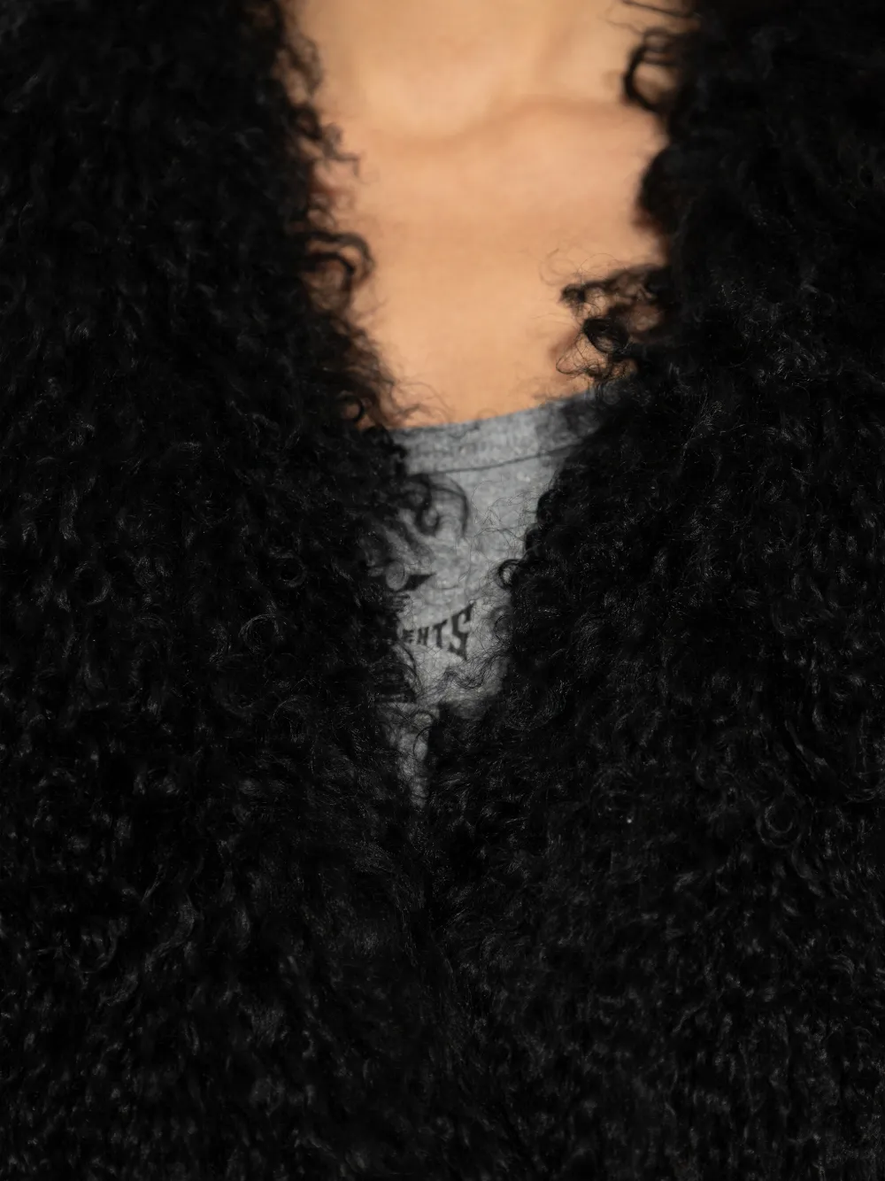 Черный укороченный стиль с длинными рукавами и отделкой из меха