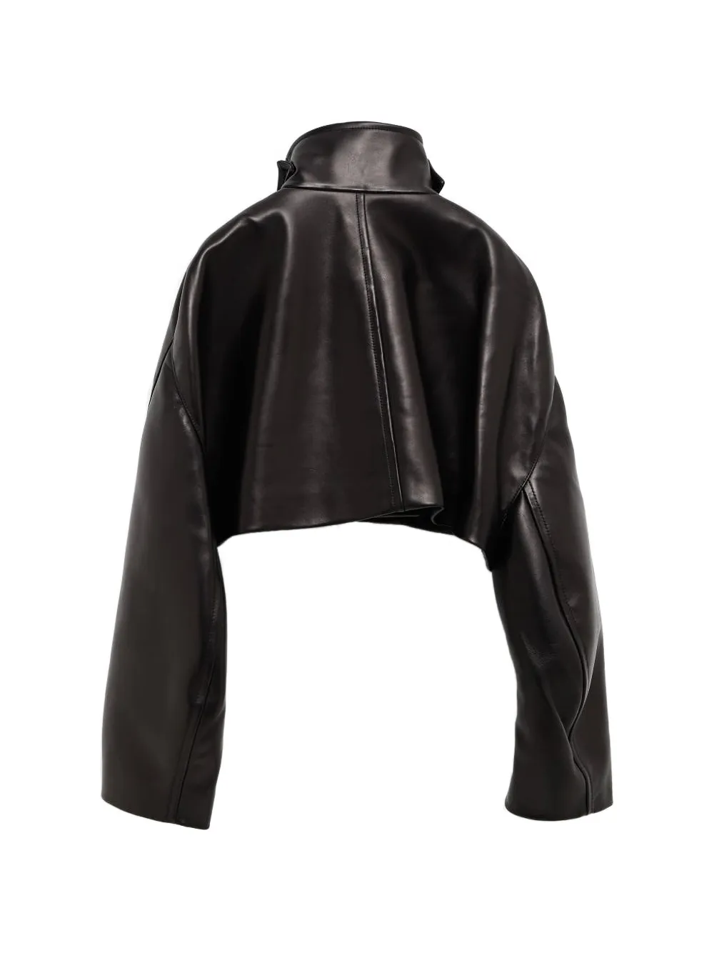 Укороченная кожаная куртка Khaite, черный 497 547₽