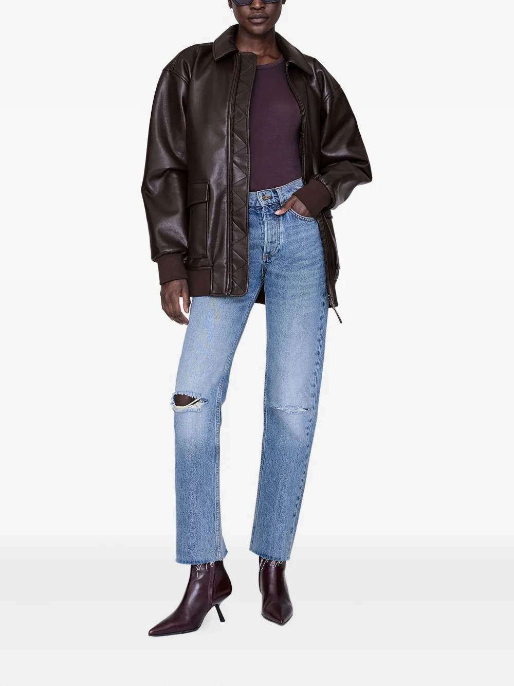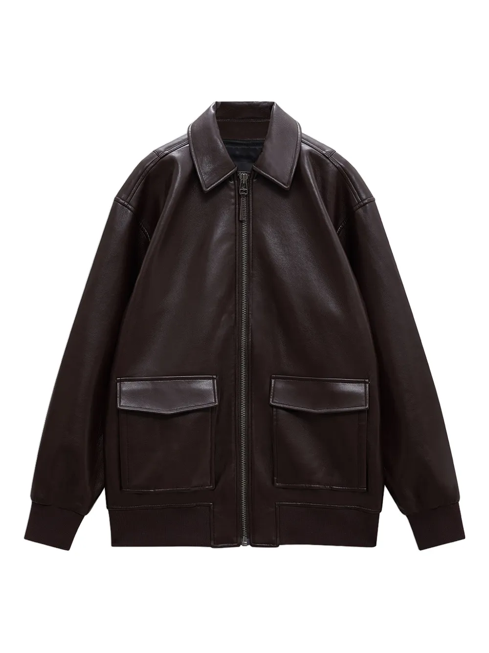 Коричневый застежка-молния спереди два накладных кармана спереди классический воротник длинные рукава