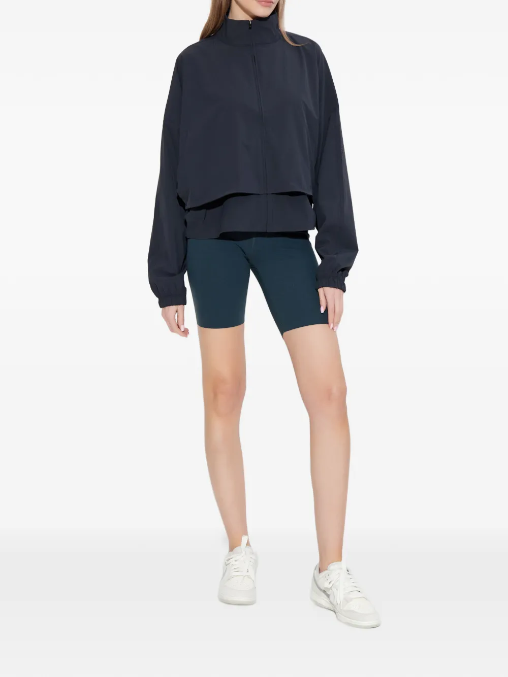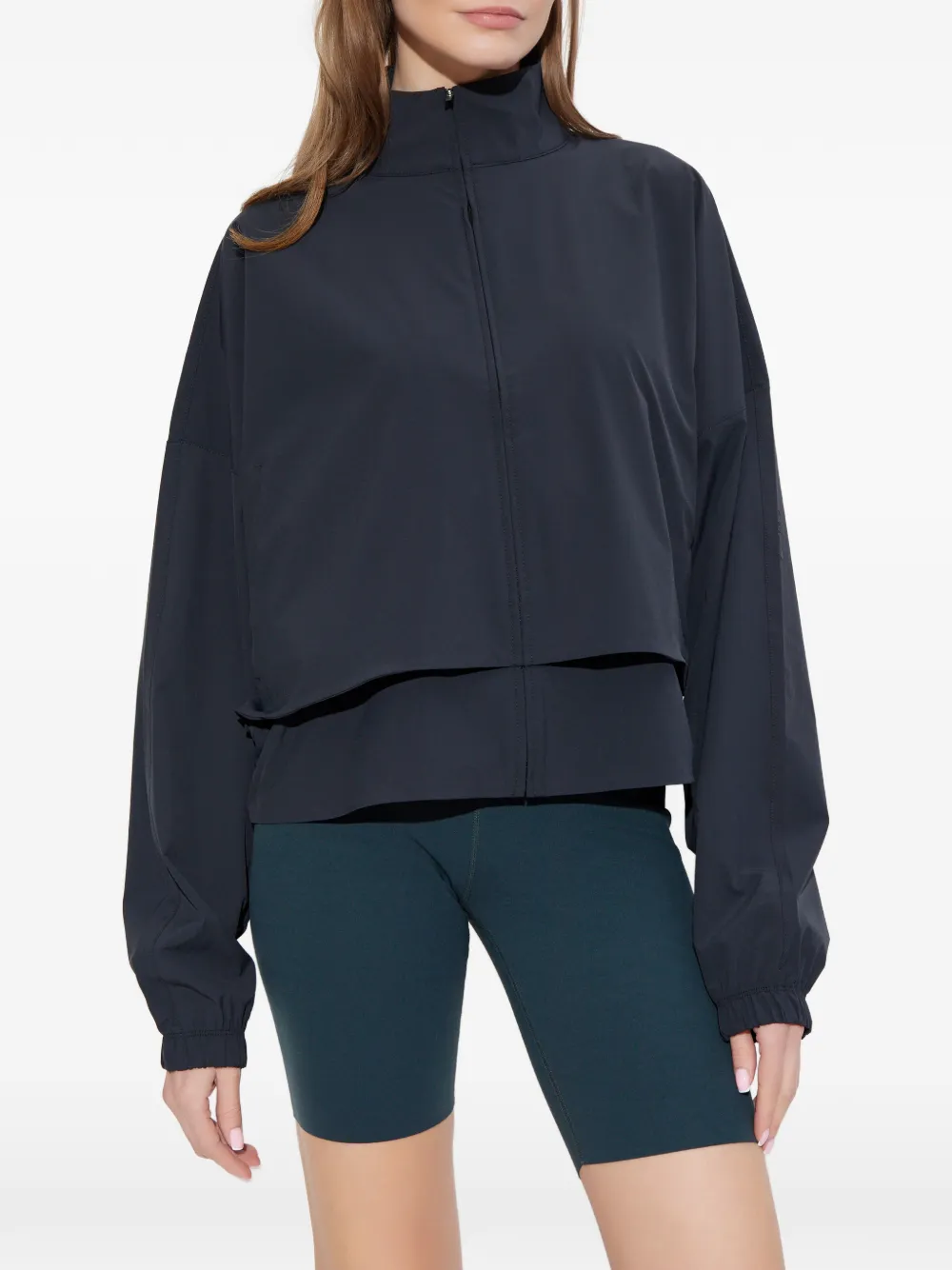 Темно-синий, застежка-молния спереди, высокий воротник, эластичные манжеты, многослойный дизайн