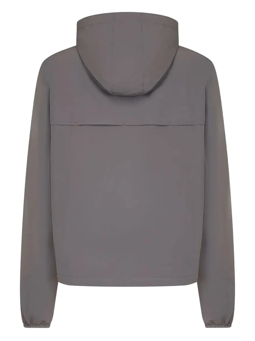 Темно-серый худи на молнии с капюшоном, длинными рукавами на манжетах, с принтом-логотипом