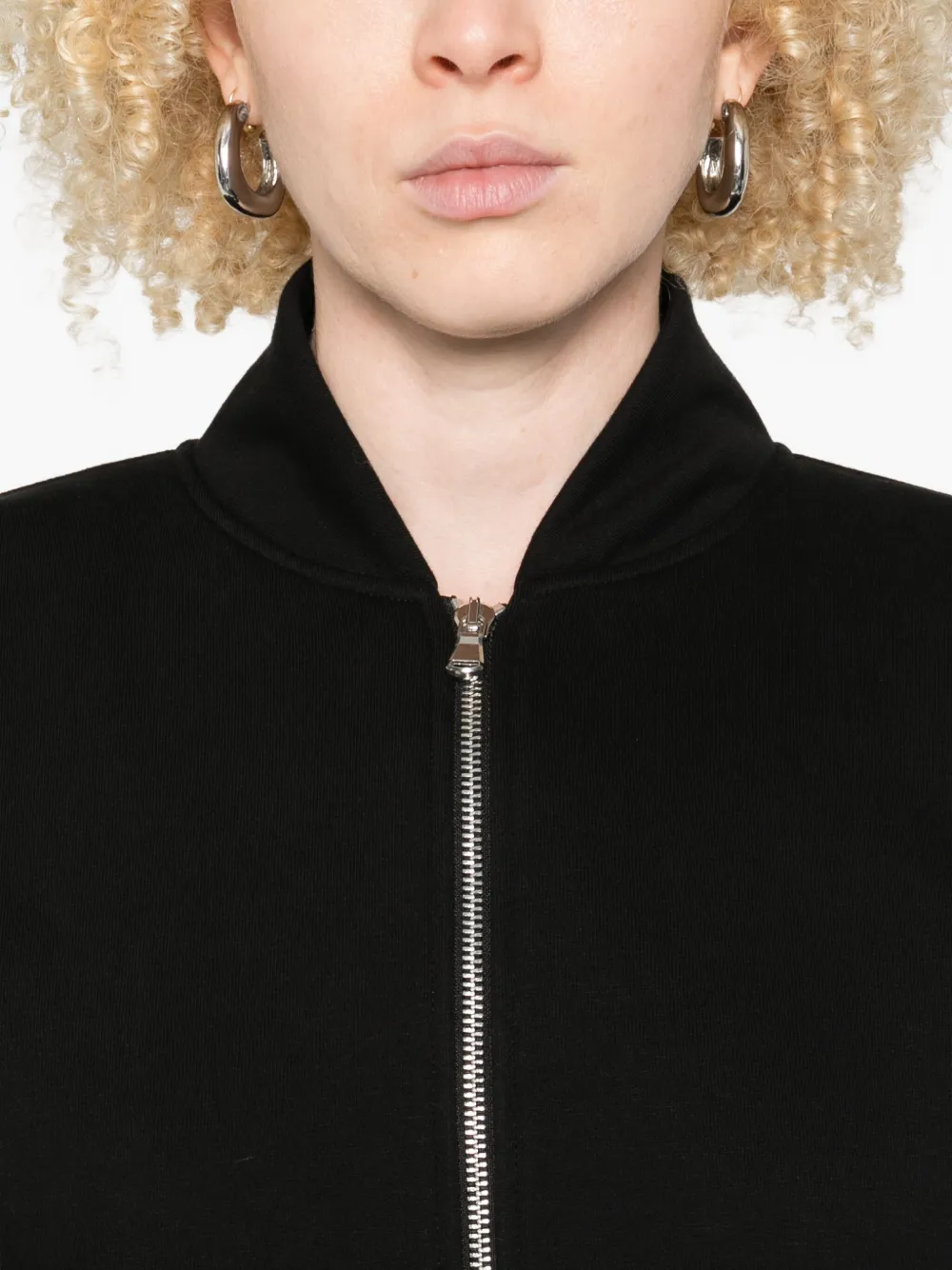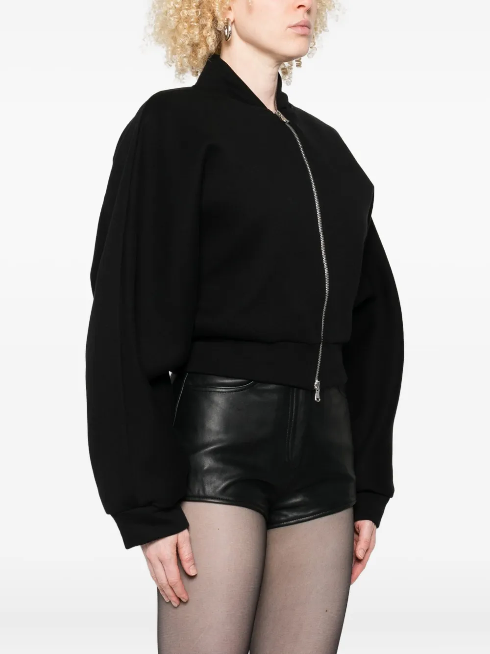Черный застежка-молния спереди укороченный низ длинные рукава манжеты в рубчик воротник-бомбер