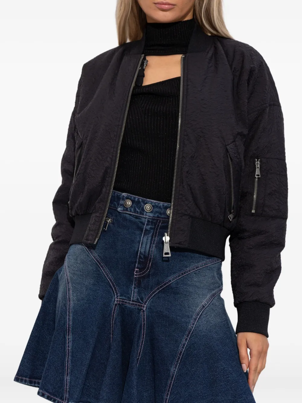 Черный застежка-молния вязаные манжеты боковые карманы на молнии вышитый логотип