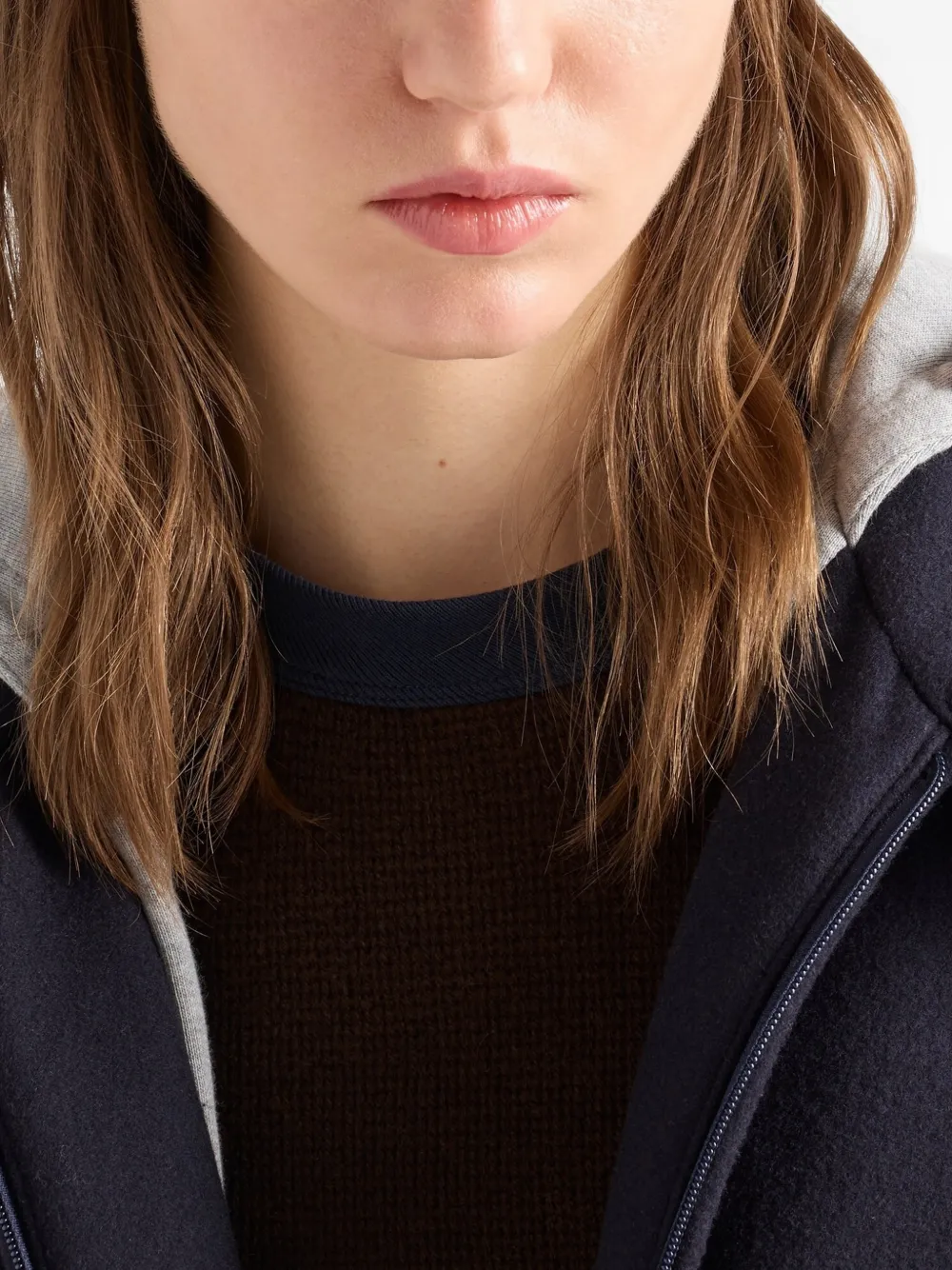 Вязаная куртка с капюшоном в рубчик Prada, синий