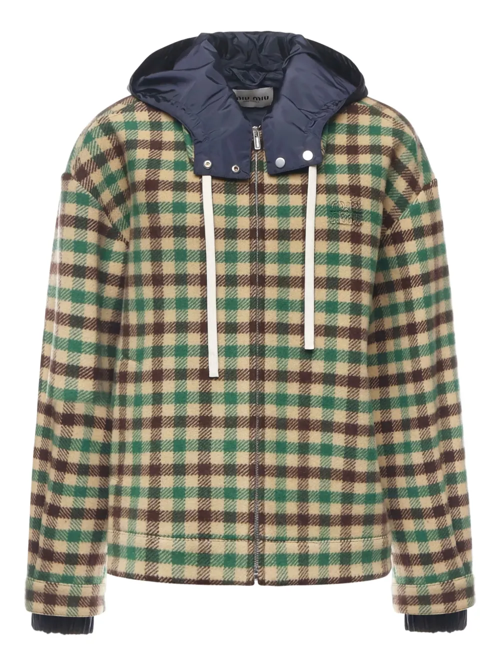 Куртка в клетку гингем с капюшоном Miu Miu, зеленый 399 672₽