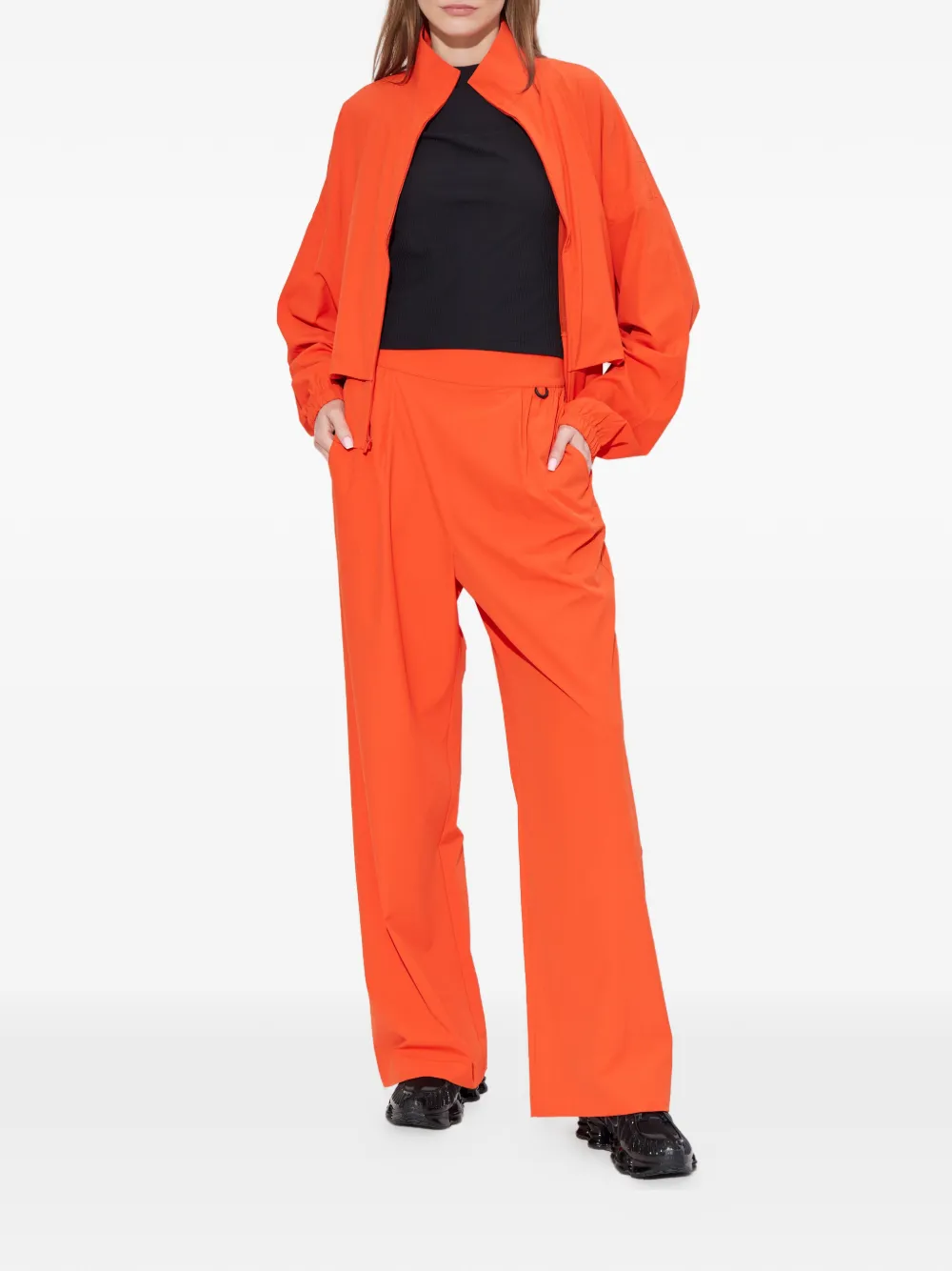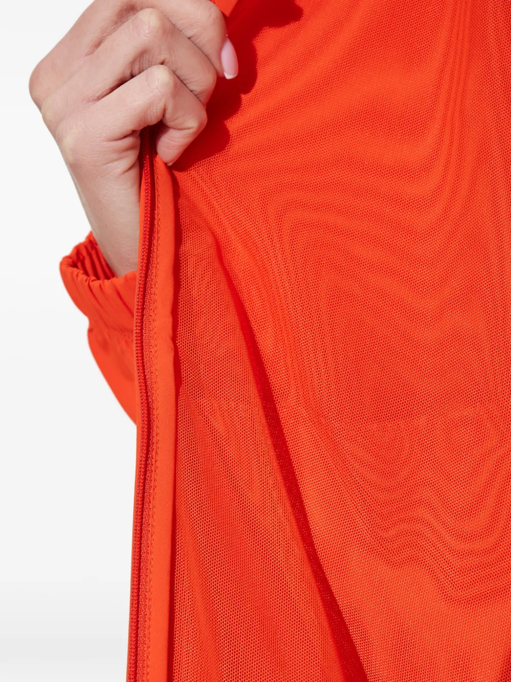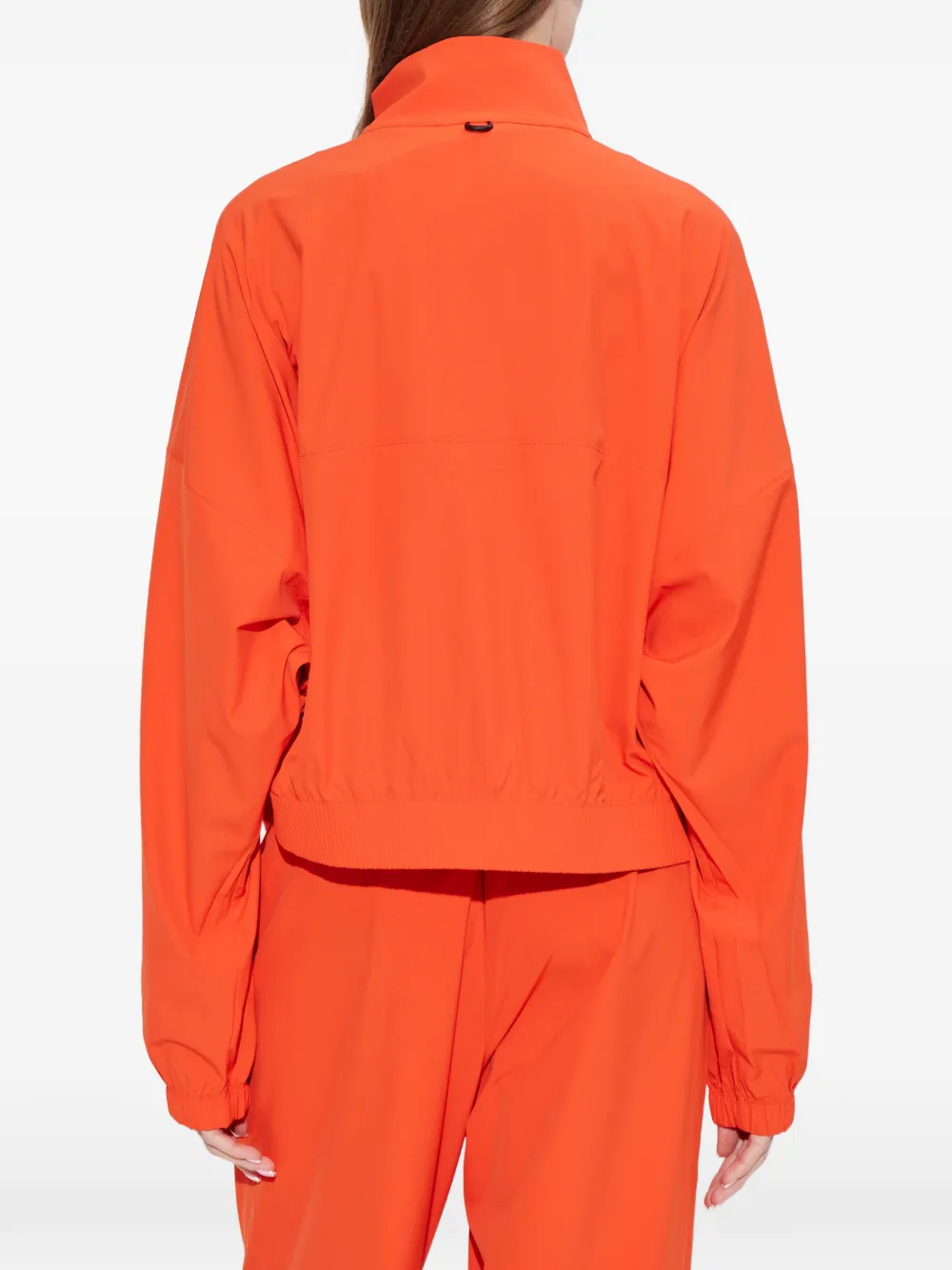 Оранжевый верх с застежкой-молнией спереди, высоким воротником, эластичным подолом, длинными рукавами и многослойным дизайном