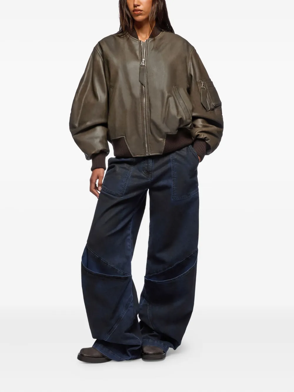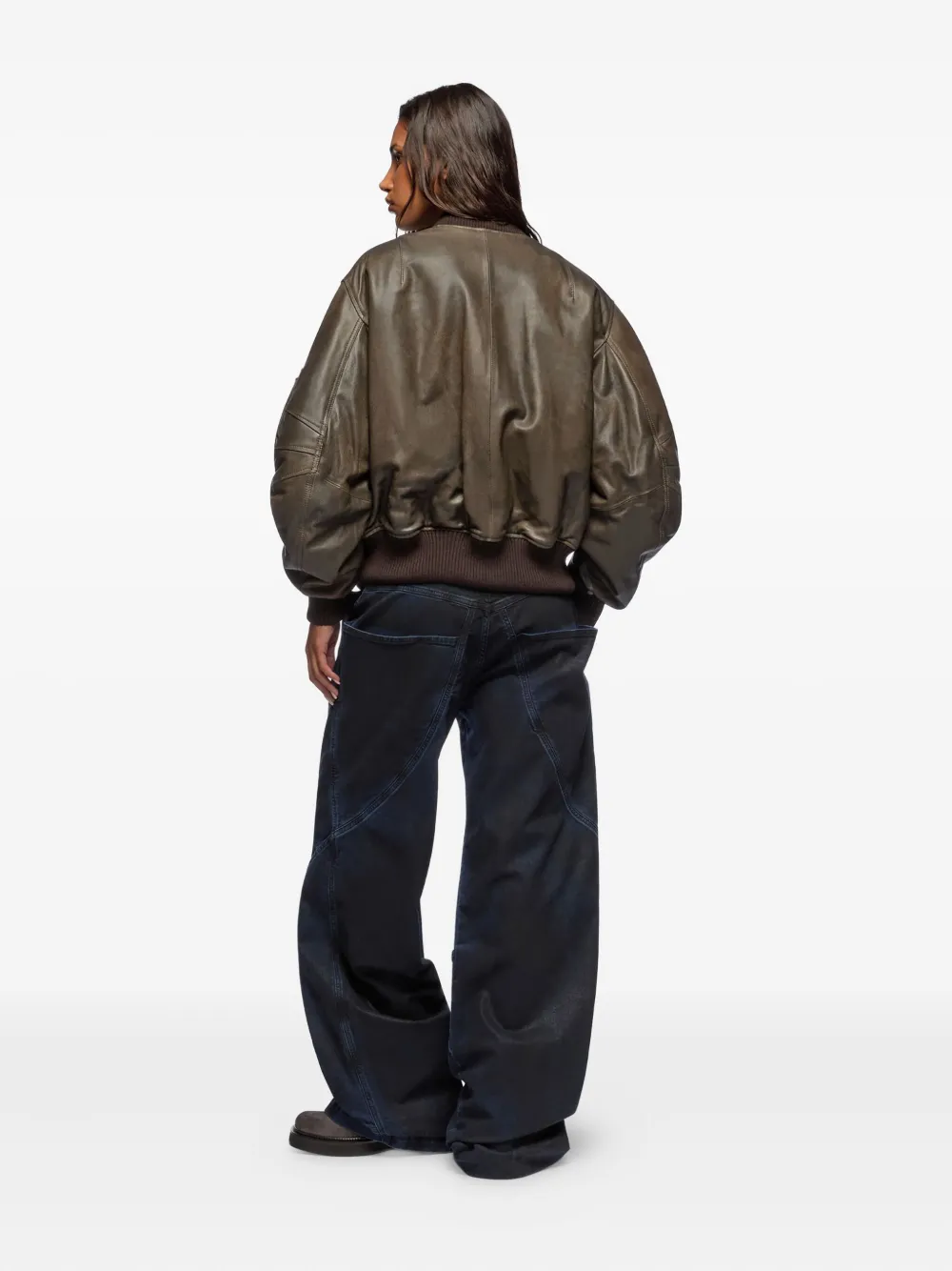 Темно-коричневый кожа застежка-молния спереди длинные рукава ребристый нижний край карман на рукаве на молнии