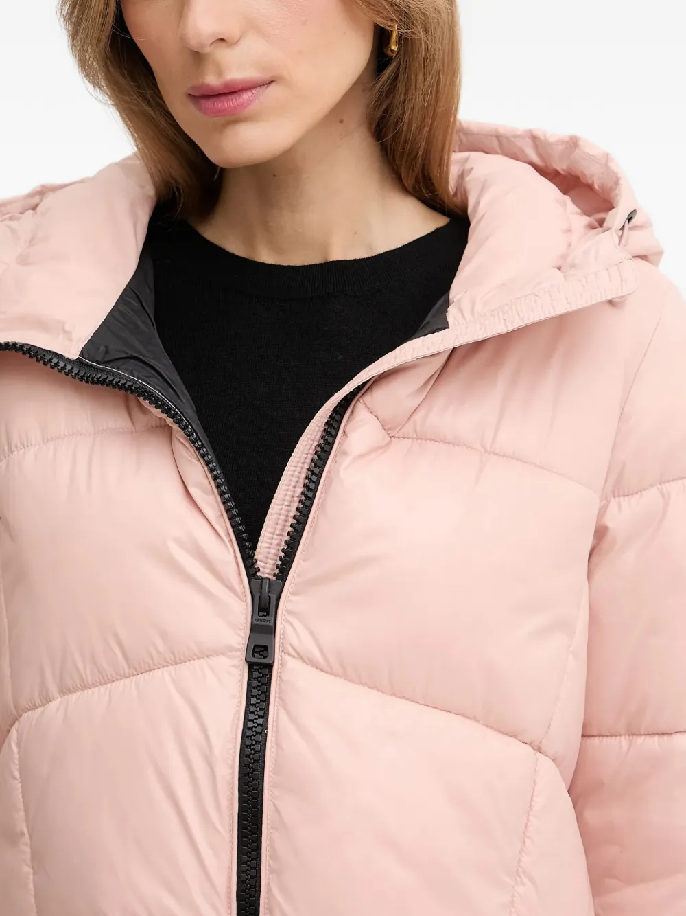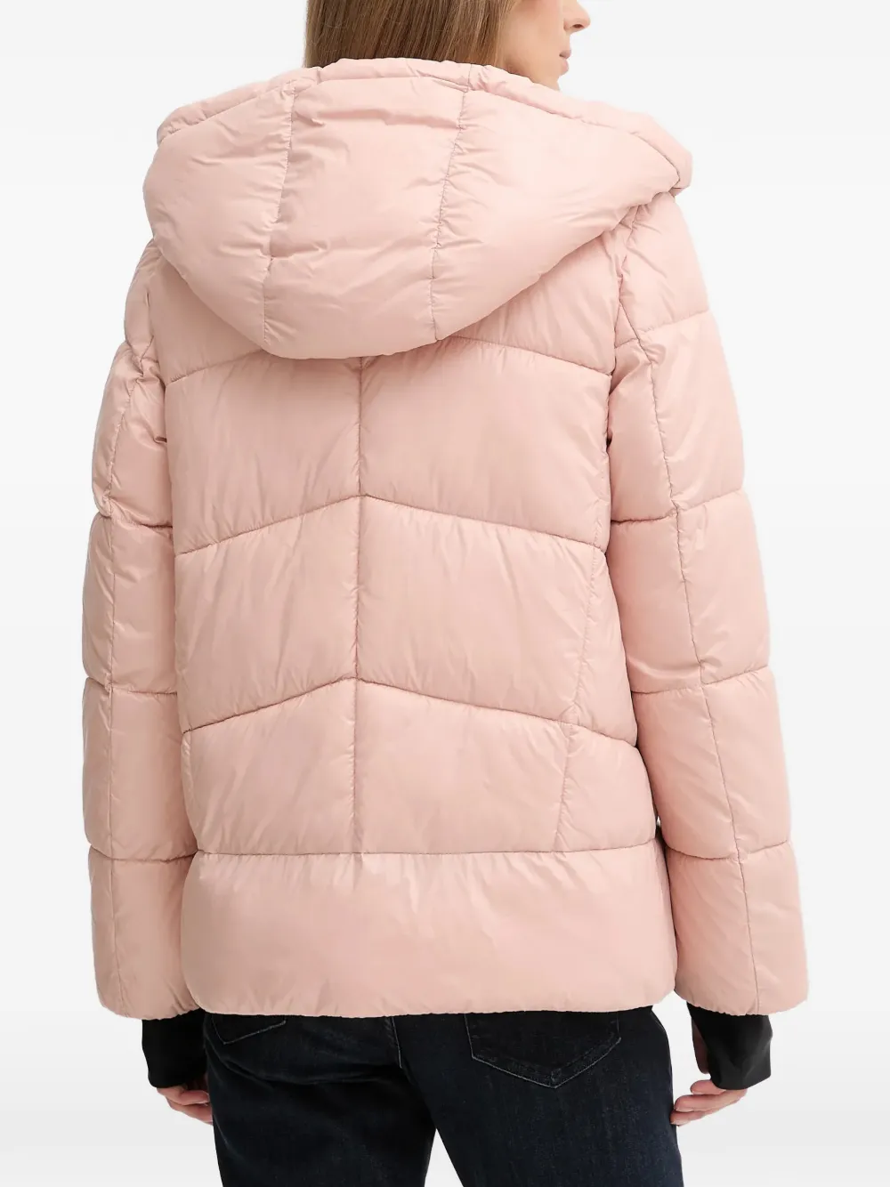 Розовая куртка с простеганным узором, капюшоном, длинными рукавами, застежкой-молнией и накладными карманами