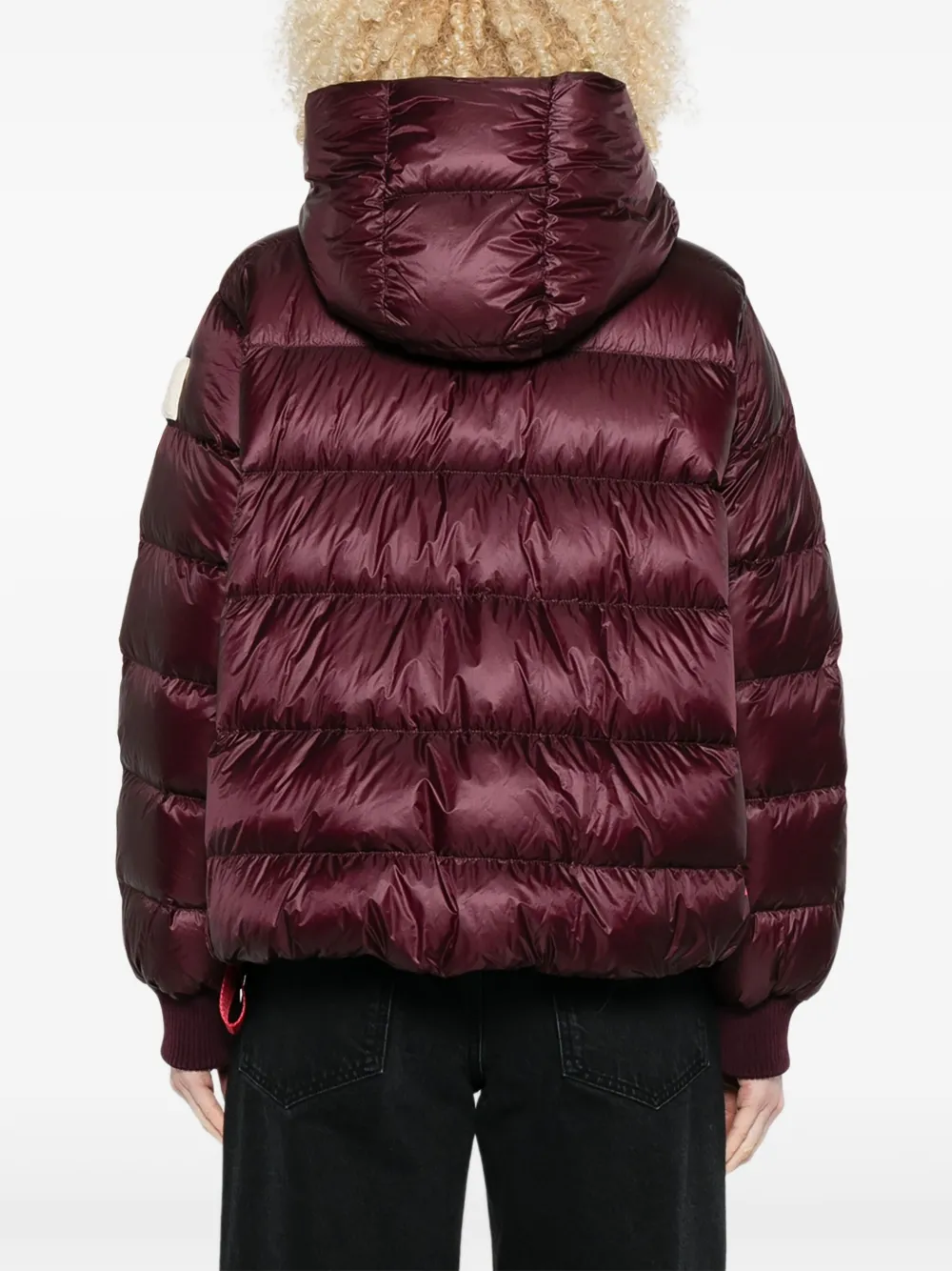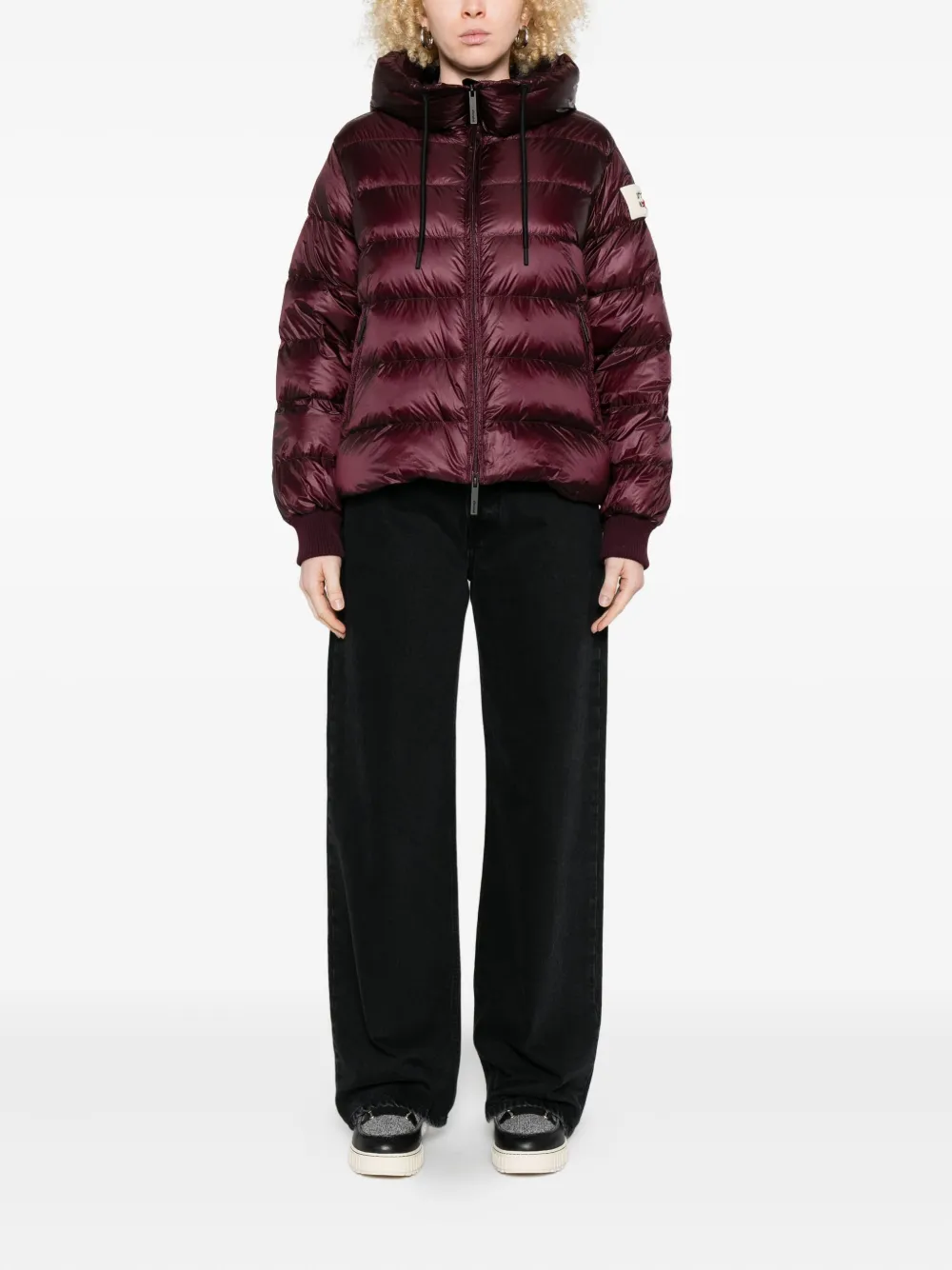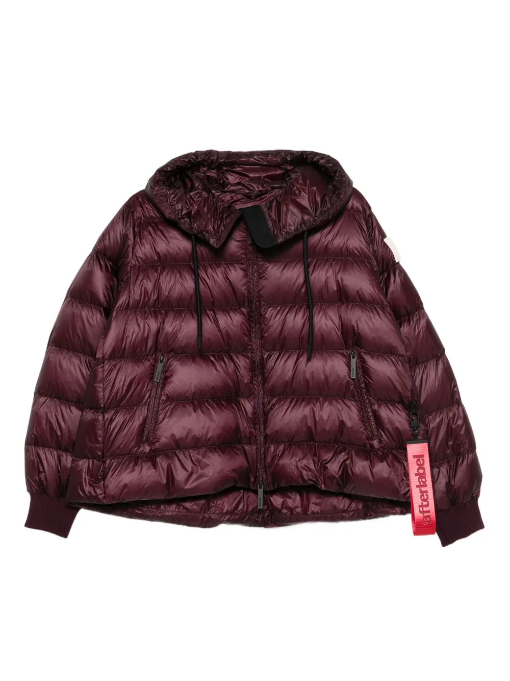 Бордовый стеганый дизайн капюшон застежка-молния спереди боковые карманы манжеты в рубчик
