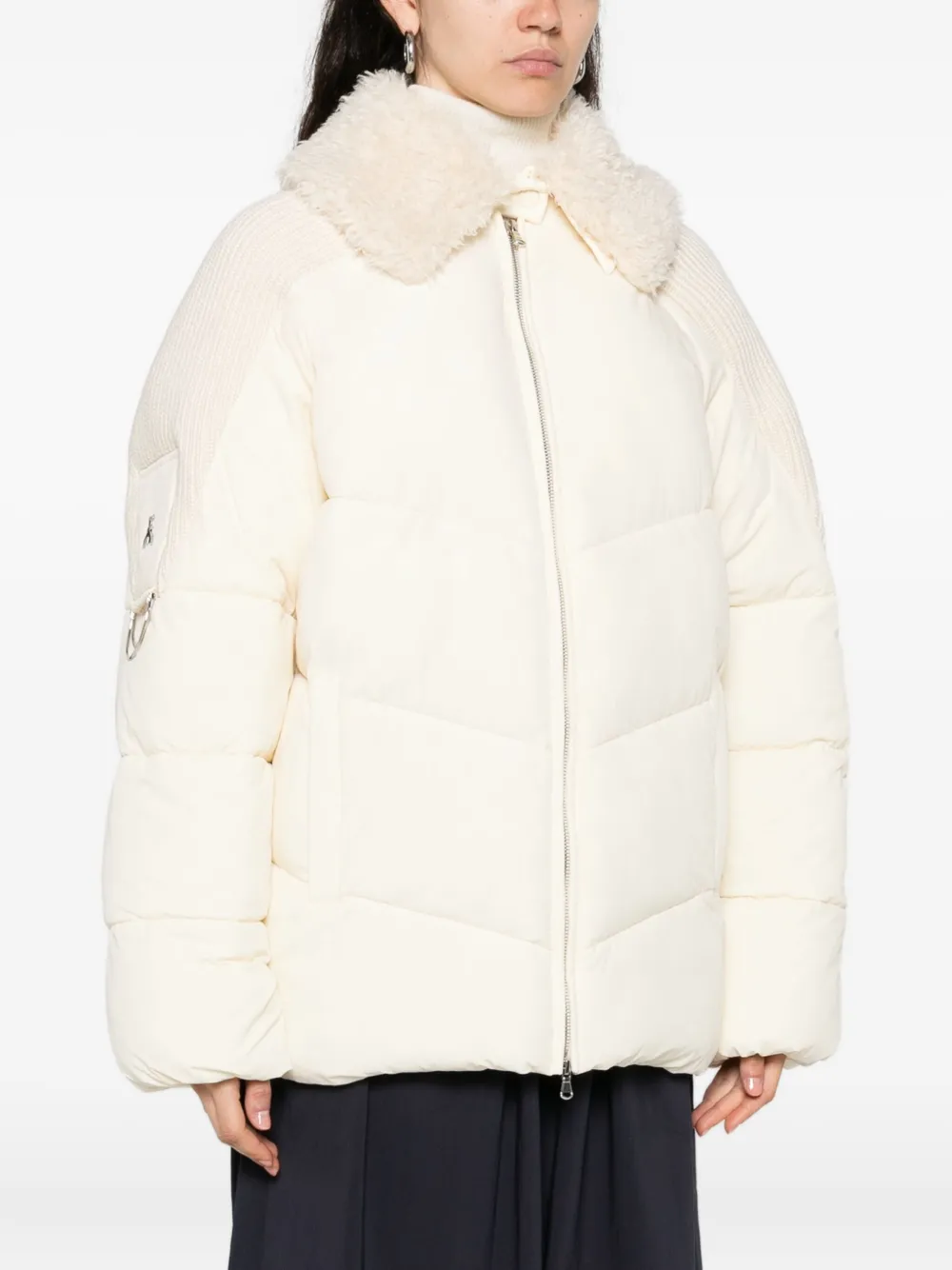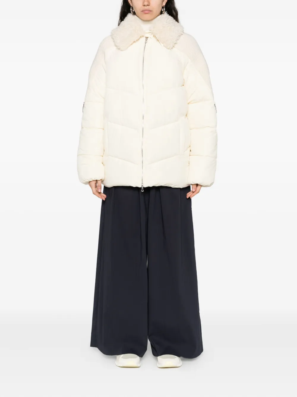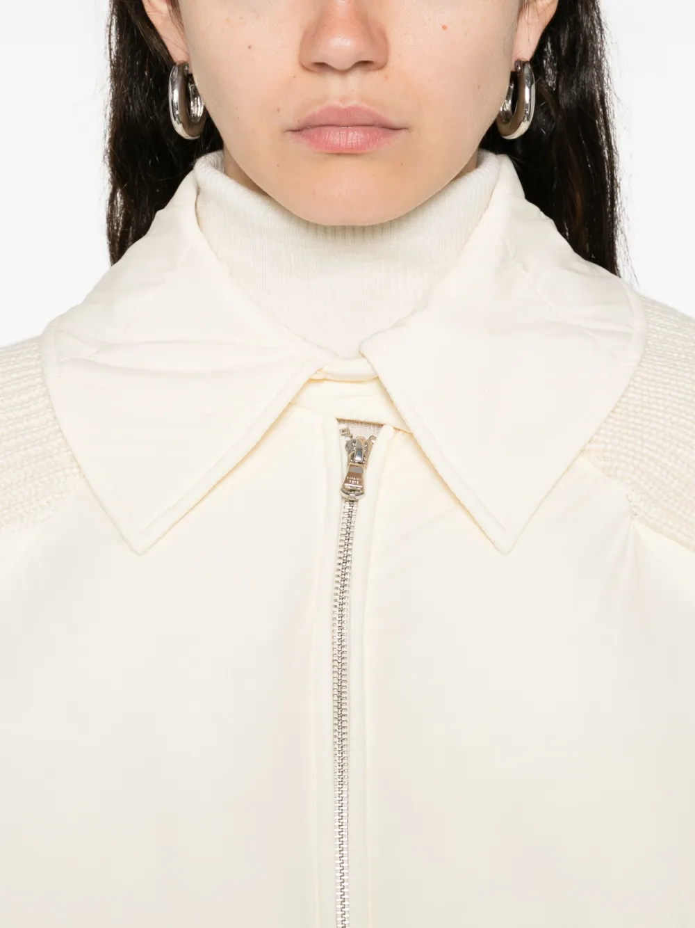 Белый застежка-молния спереди длинные рукава стеганая отделка