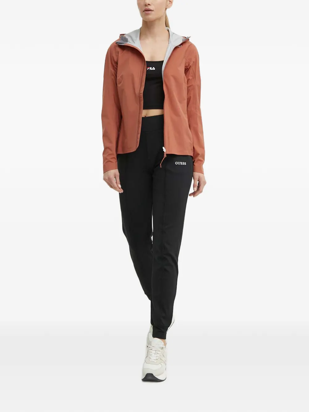 Терракотовый худи с логотипом, застежка на молнию, длинные рукава
