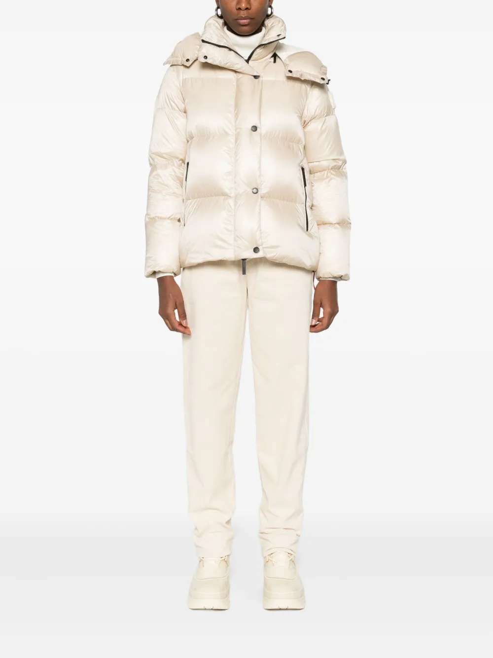 Светло-бежевый стеганый дизайн капюшон с вырезом застежка на кнопки карманы на молнии классический капюшон