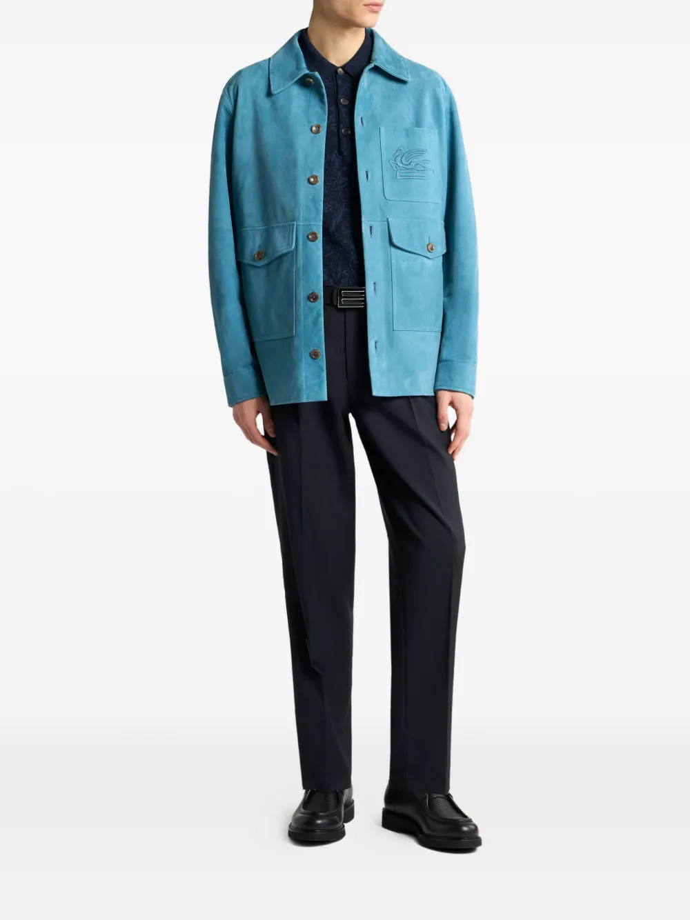 Замшевая рубашка-куртка с вышивкой "Пегас" Etro, синий