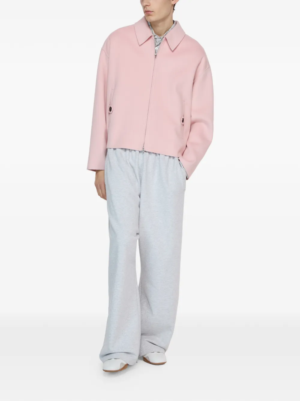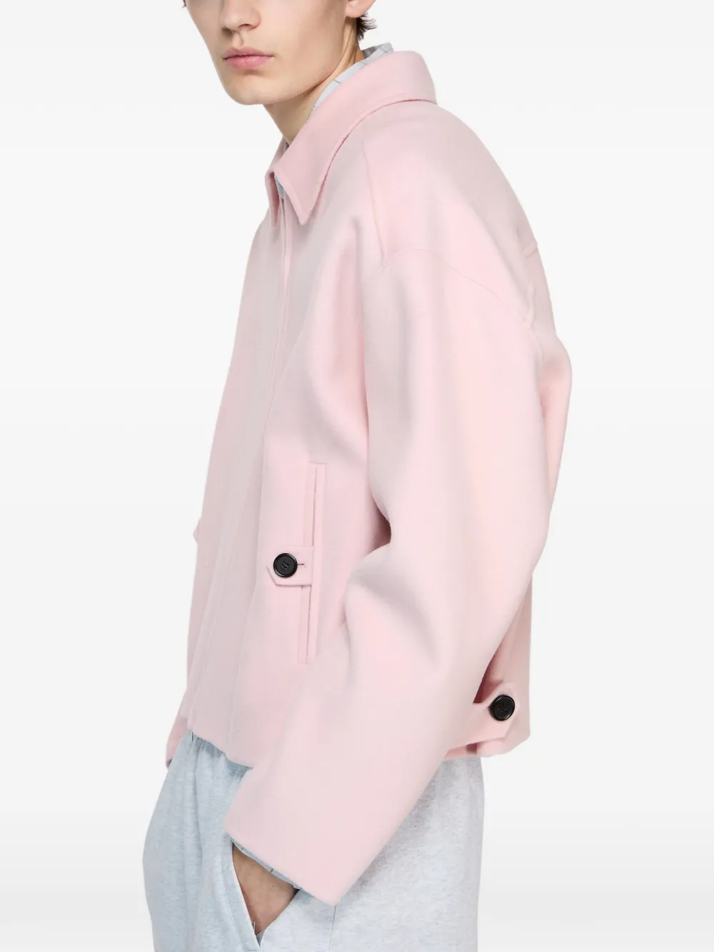 Бледно-розовый цвет, отложной воротник, застежка-молния спереди, накладные карманы на пуговицах, длинные рукава